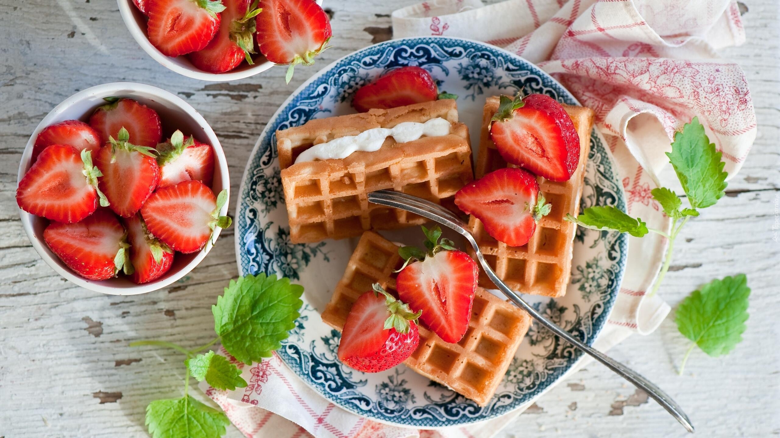Edytor tapety: Gofry z truskawkami na talerzu