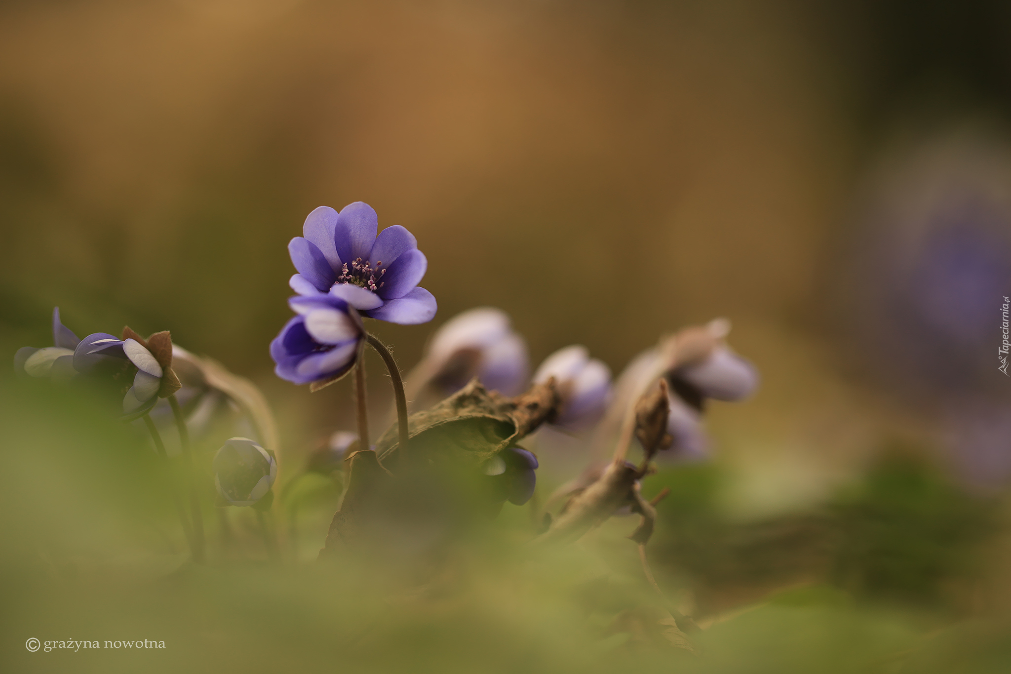 Edytor tapety: Przylaszczki liliowe w liściach