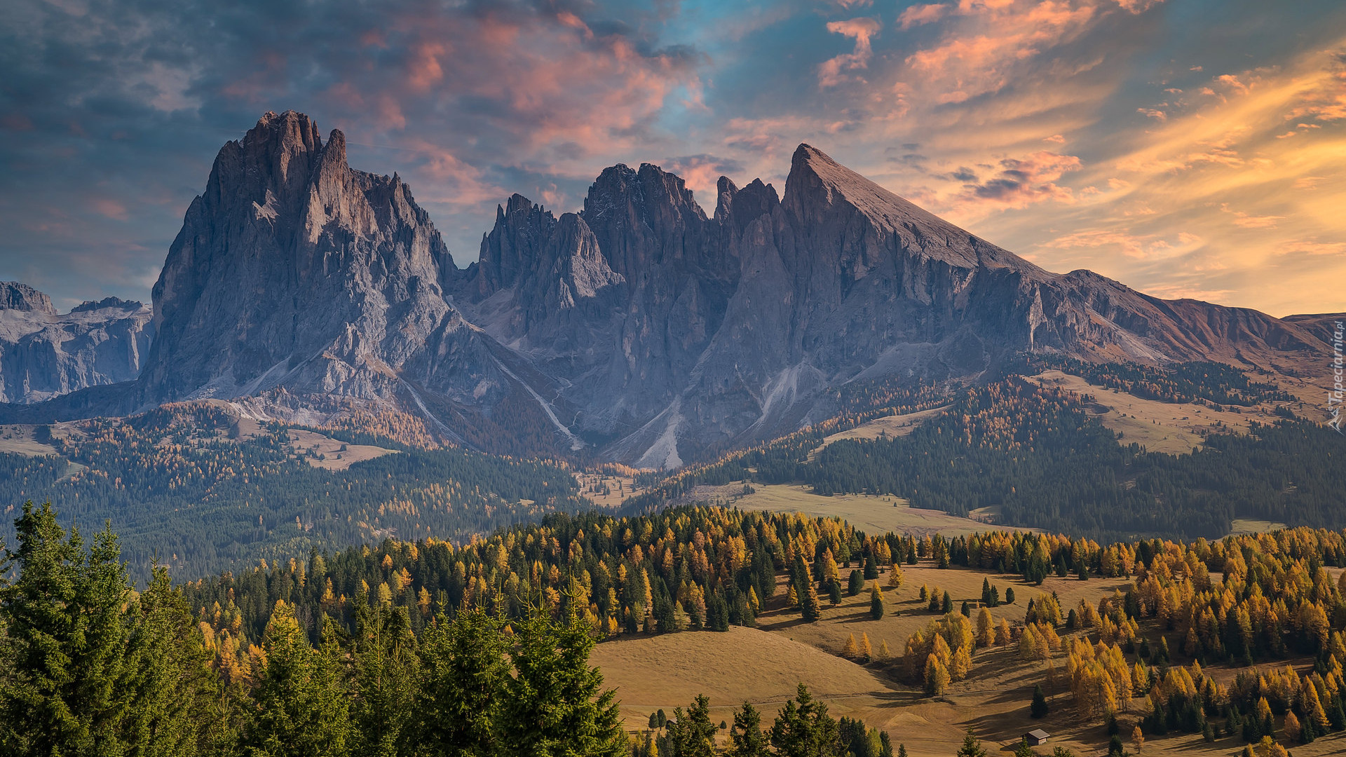 Edytor tapety: Płaskowyż Seiser Alm na tle Dolomitów