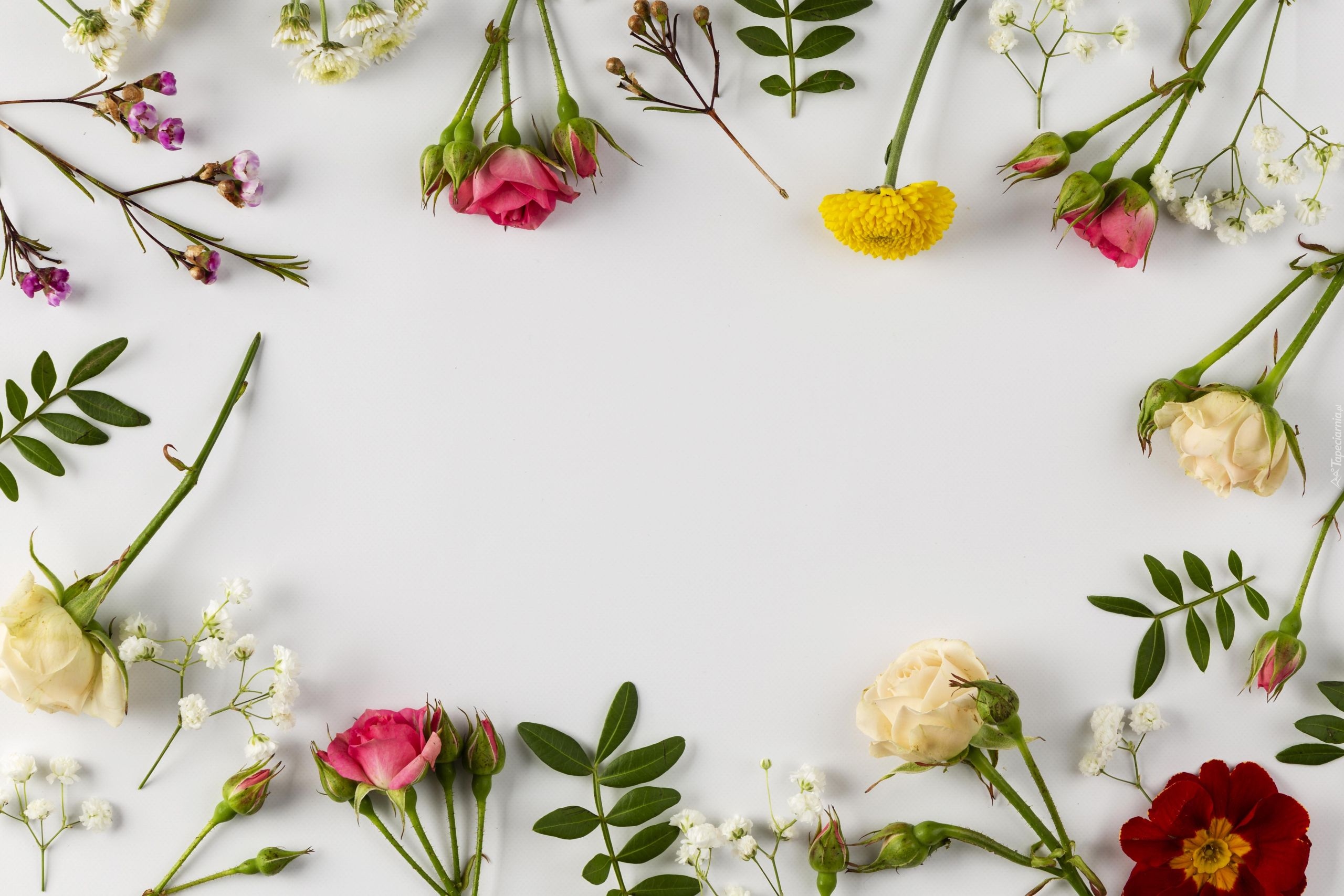 Edytor tapety: Różne rodzaje kwiatów i gipsówka na białym tle