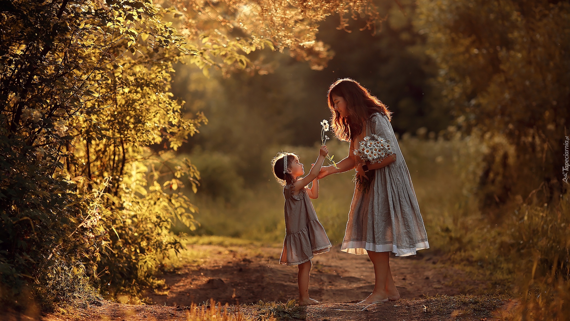 Edytor tapety: Dziewczynka z mamą na ścieżce