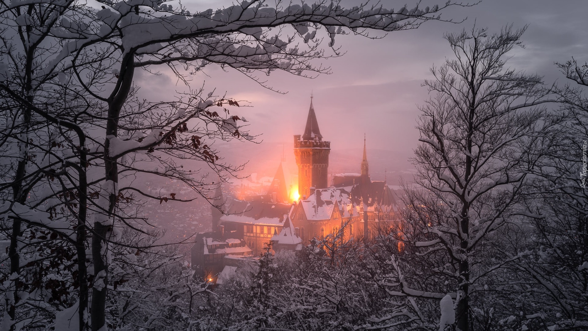 Edytor tapety: Zamek Wernigerode w zimowej scenerii