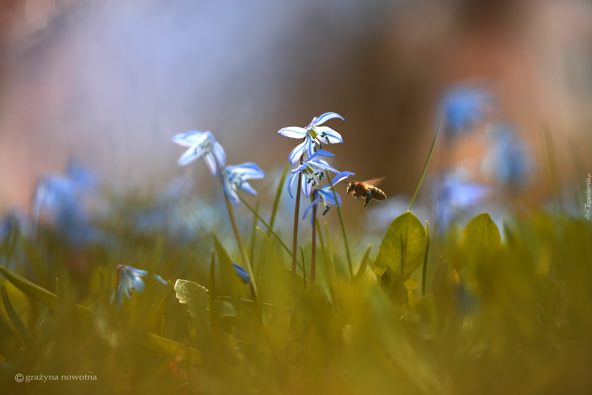 Edytor tapety: Pszczoła przy cebulicach syberyjskich