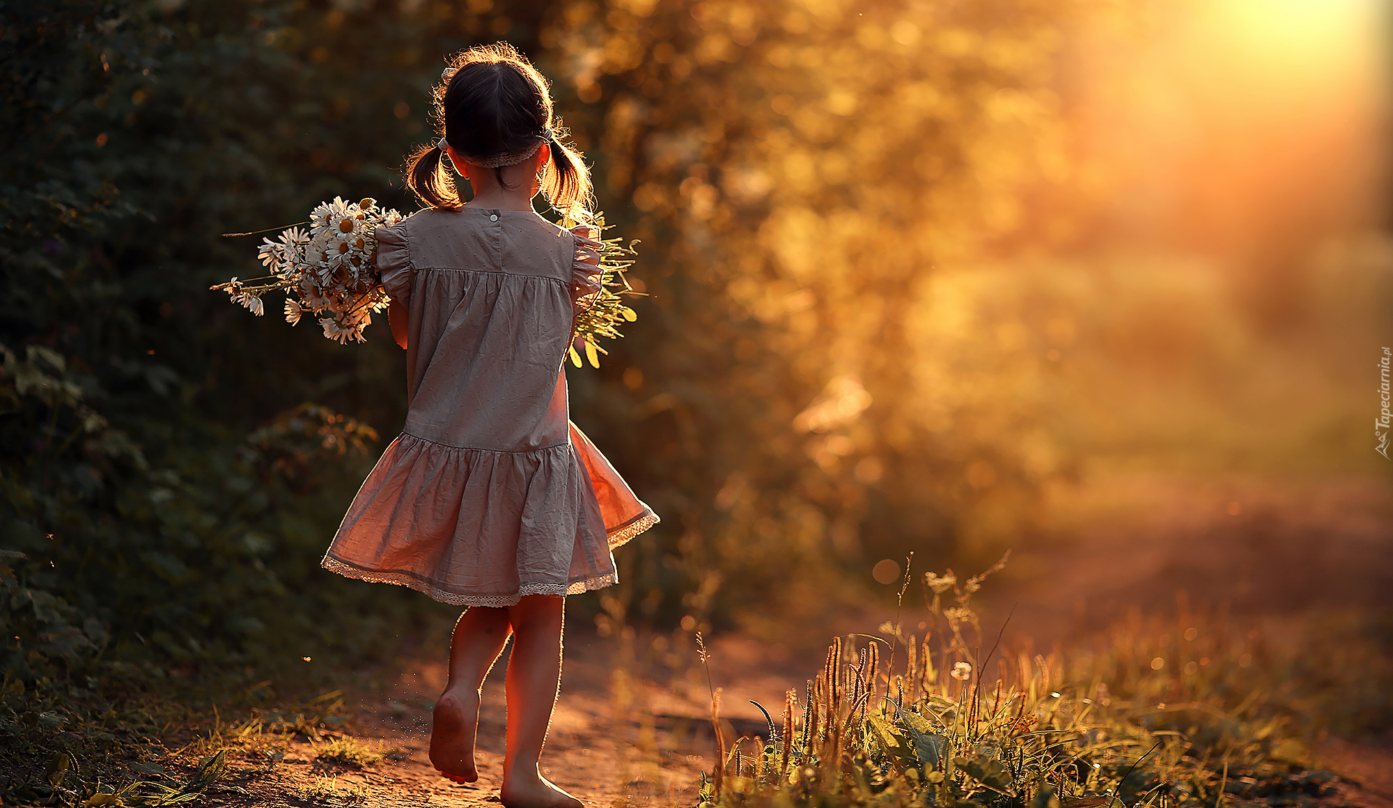 Edytor tapety: Dziewczynka w sukience z bukietem kwiatów