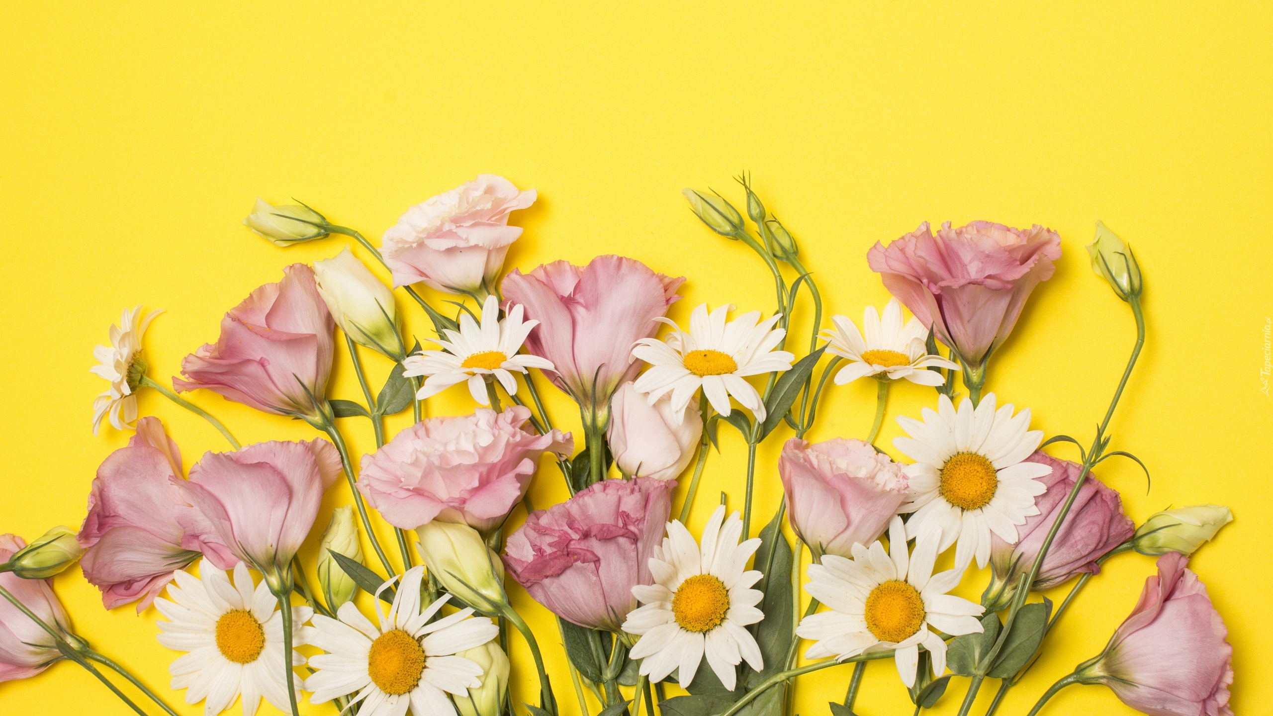 Edytor tapety: Eustomy i margerytki na żółtym tle