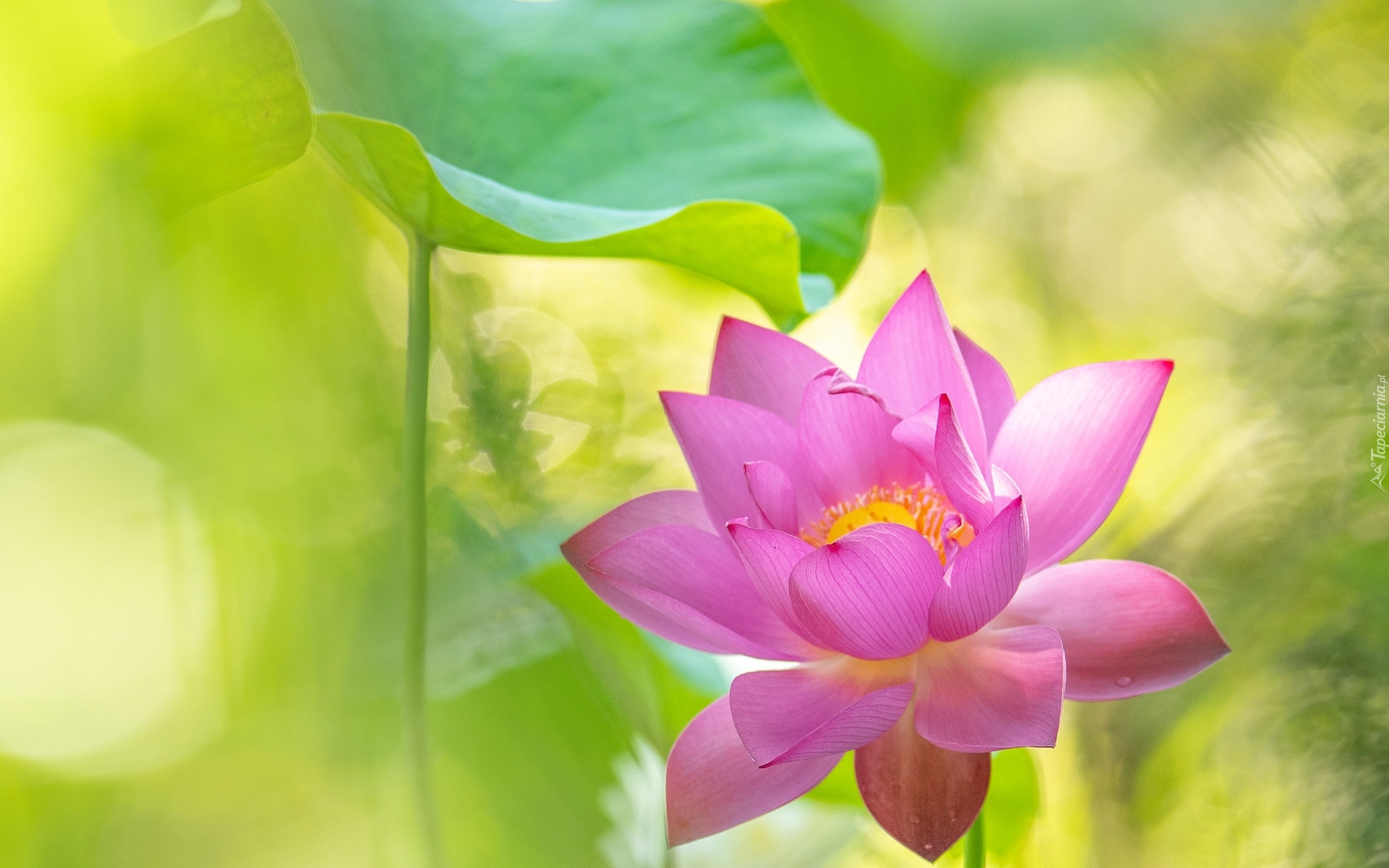 Edytor tapety: Różowy kwiat lotosu pod liściem
