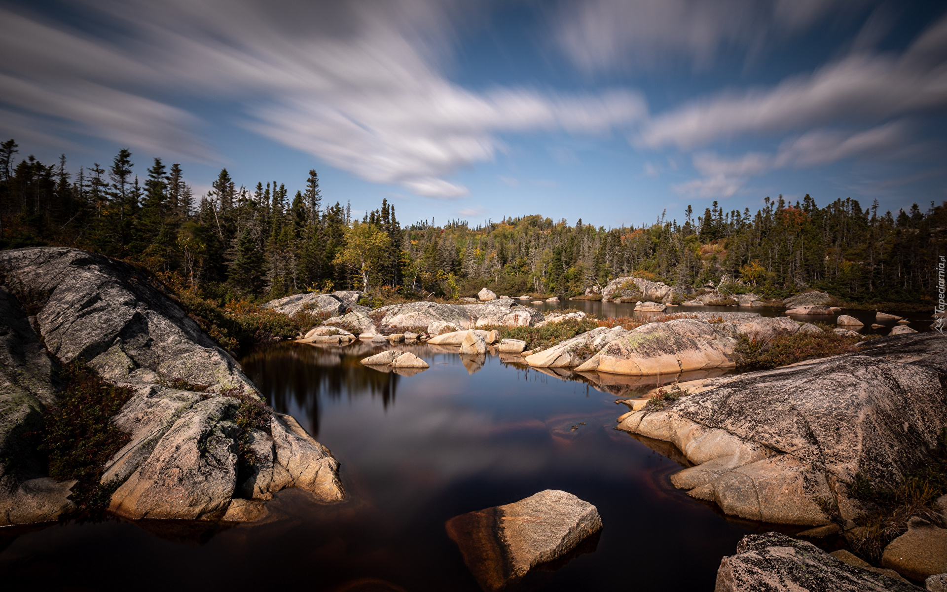Edytor tapety: Widok ze skał w jeziorze na drzewa
