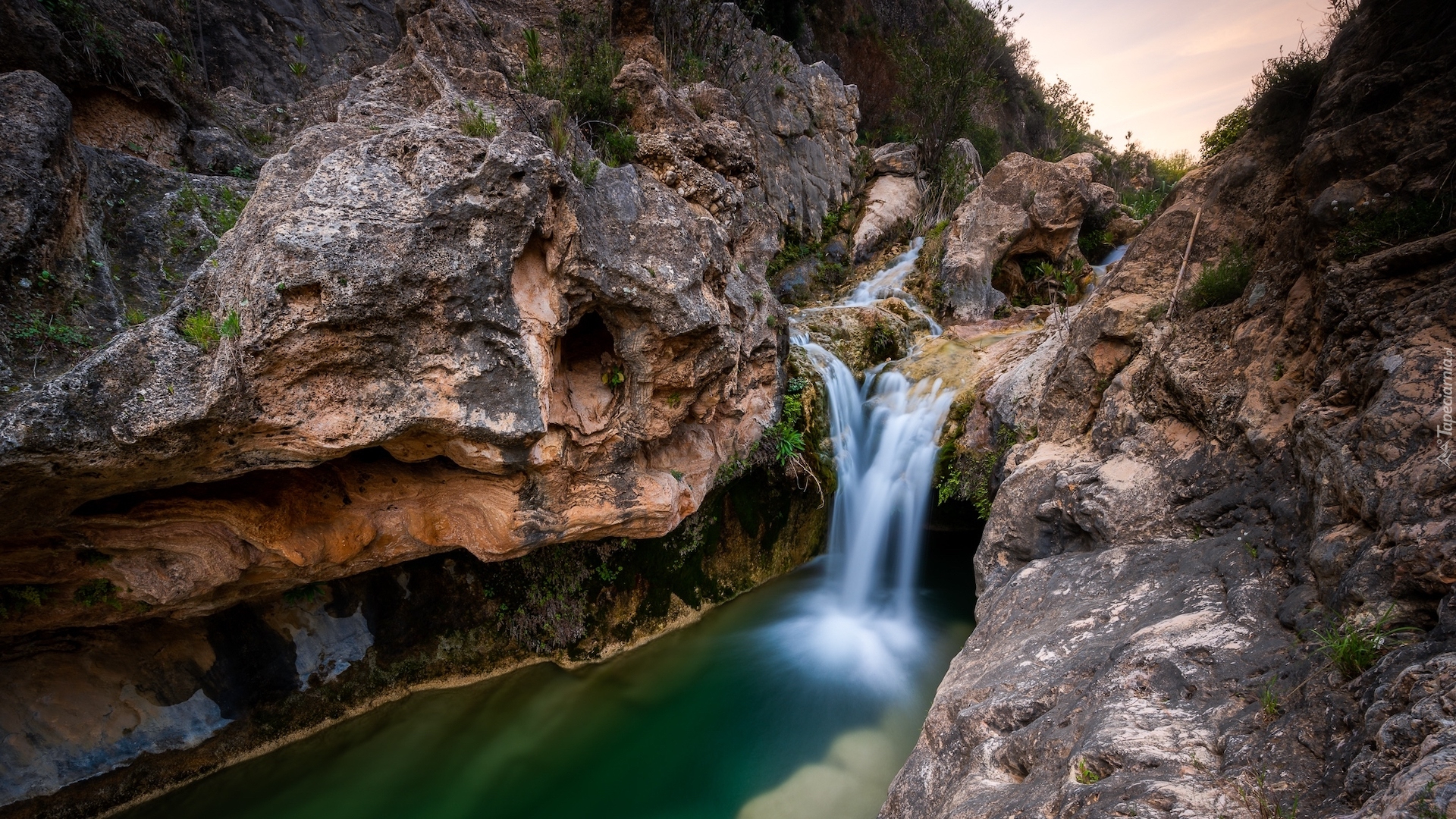 Edytor tapety: Wodospad pomiędzy skałami w Bolbaite