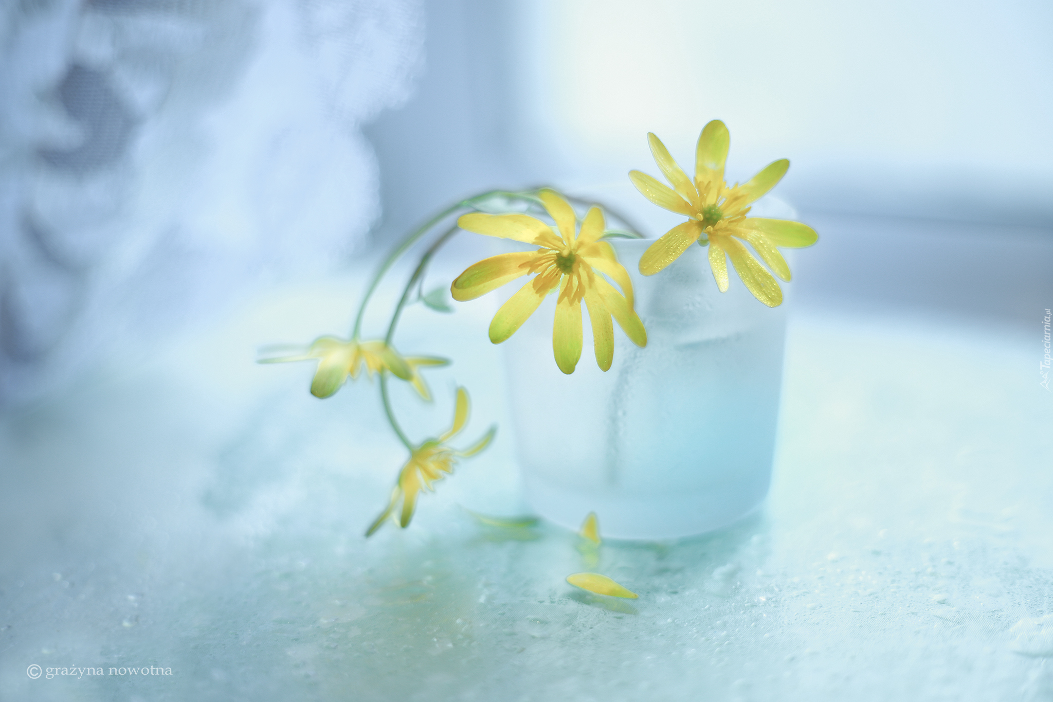 Edytor tapety: Żółty ziarnopłon wiosenny w wazoniku