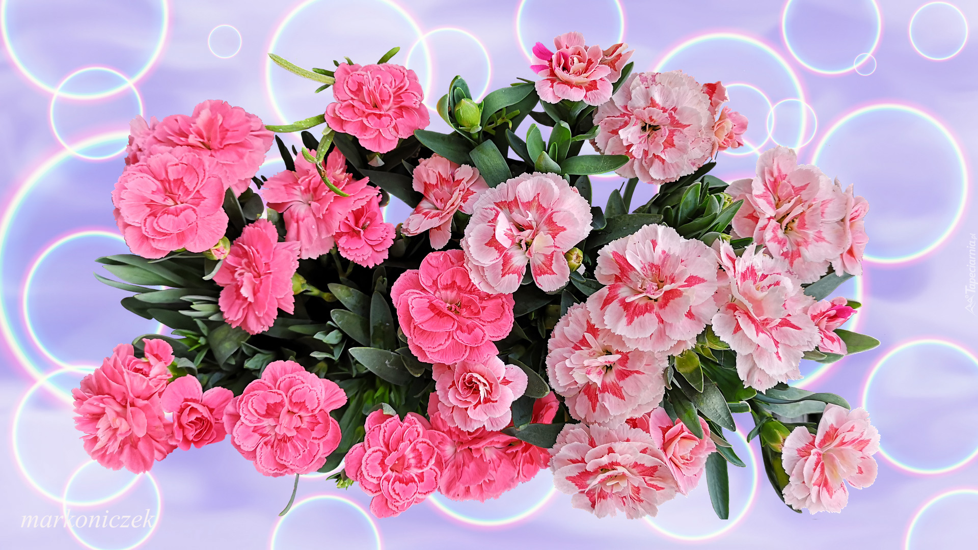 Edytor tapety: Bukiet różowych goździków na jasnym tle