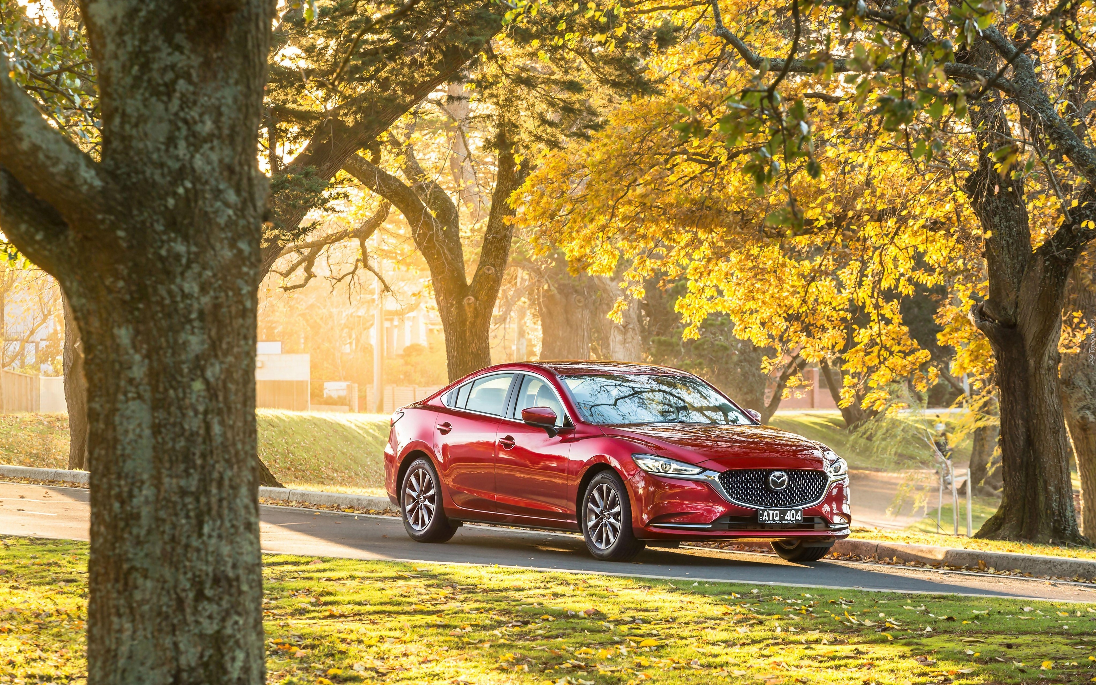 Edytor tapety: Czerwona Mazda6 w jesiennym parku