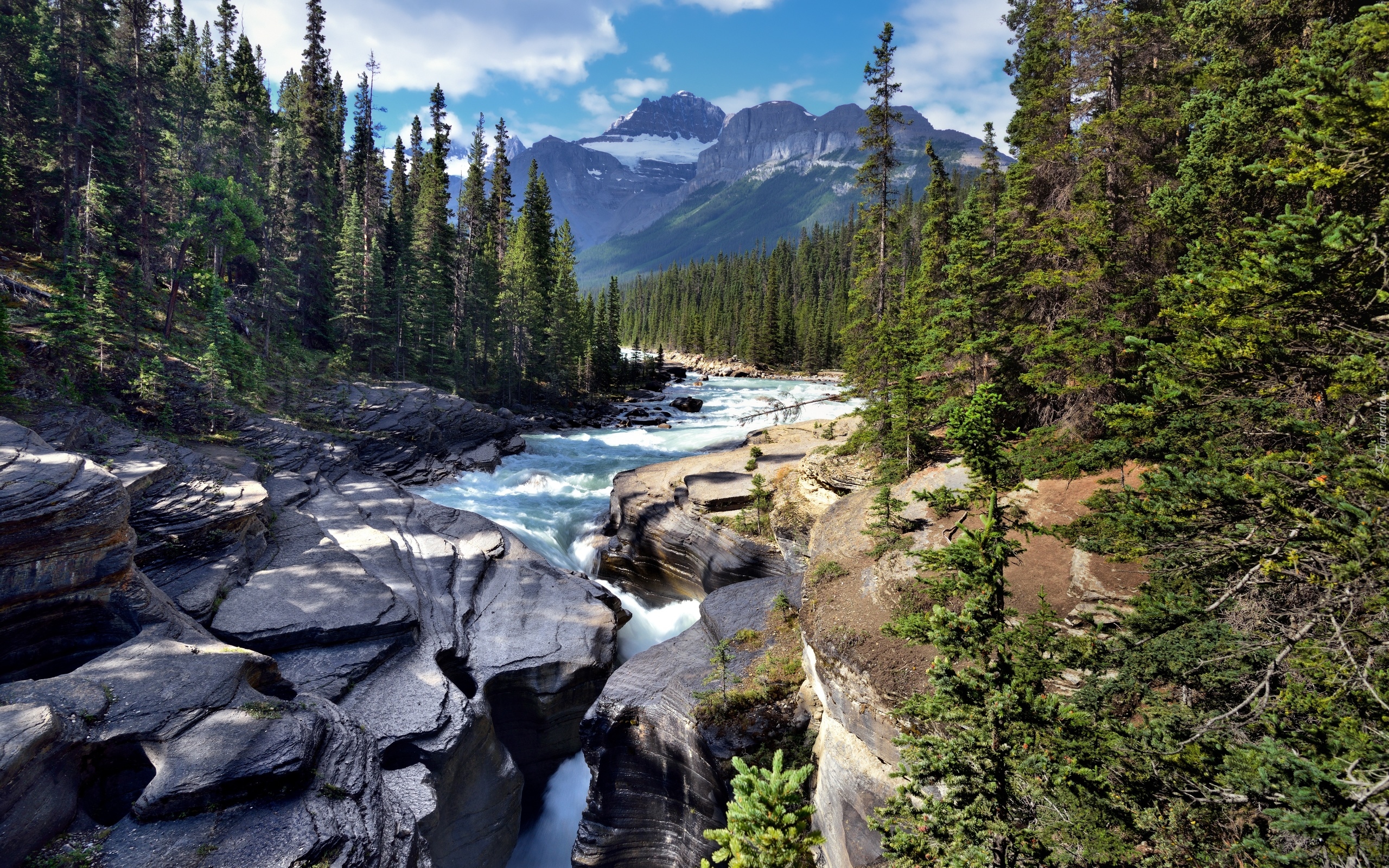 Edytor tapety: Kamienista rzeka na tle gór
