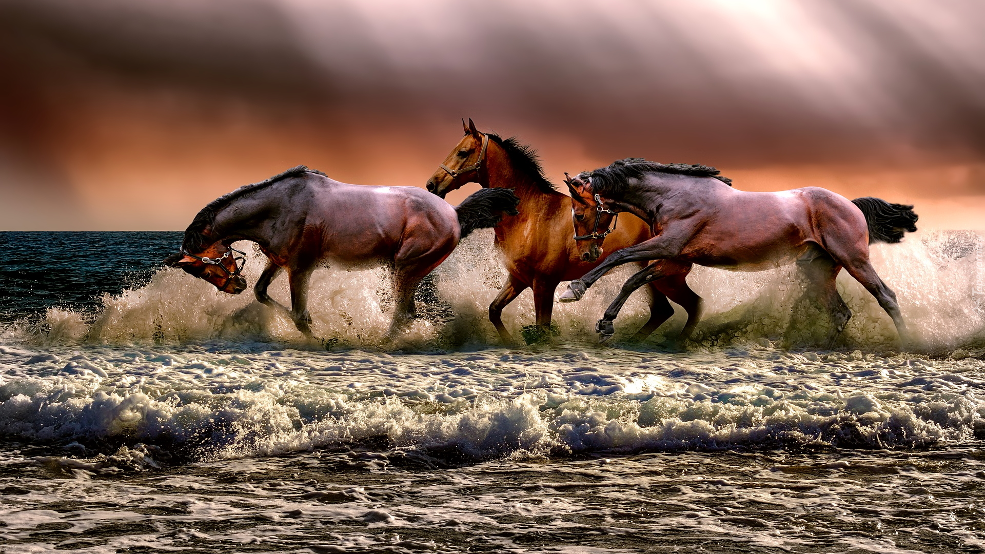 Edytor tapety: Konie nad brzegiem morza