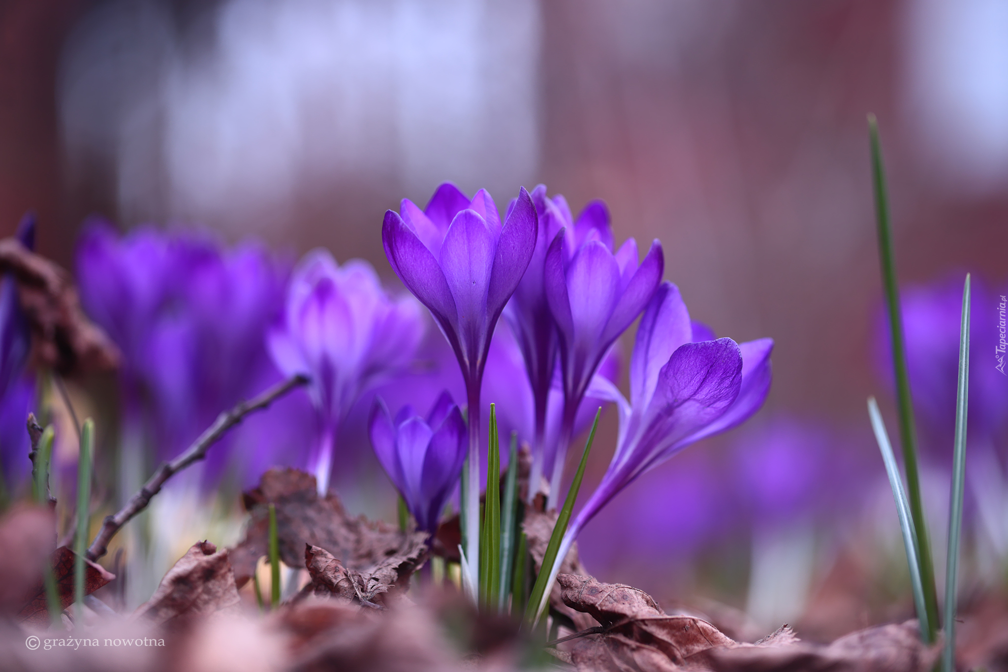 Edytor tapety: Wystajace krokusy spod suchych liści