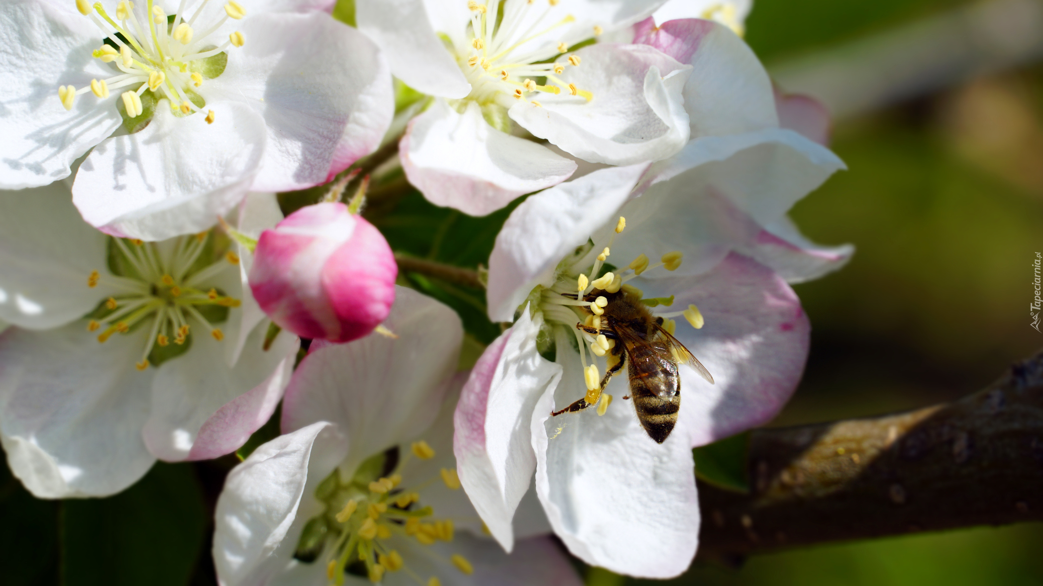 Edytor tapety: Pszczoła na kwiatku drzewa owocowego