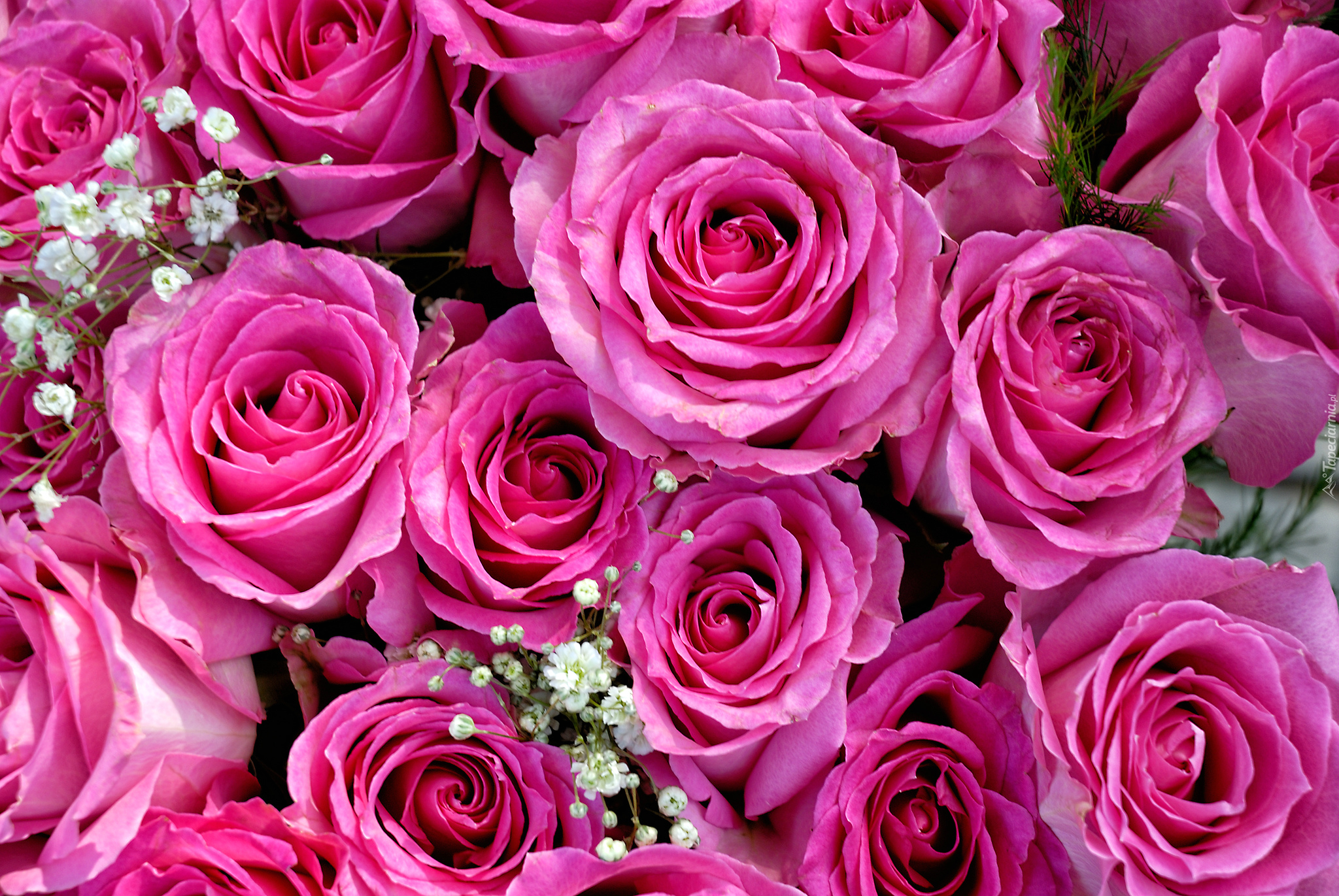 Edytor tapety: Różowe róże i gipsówka