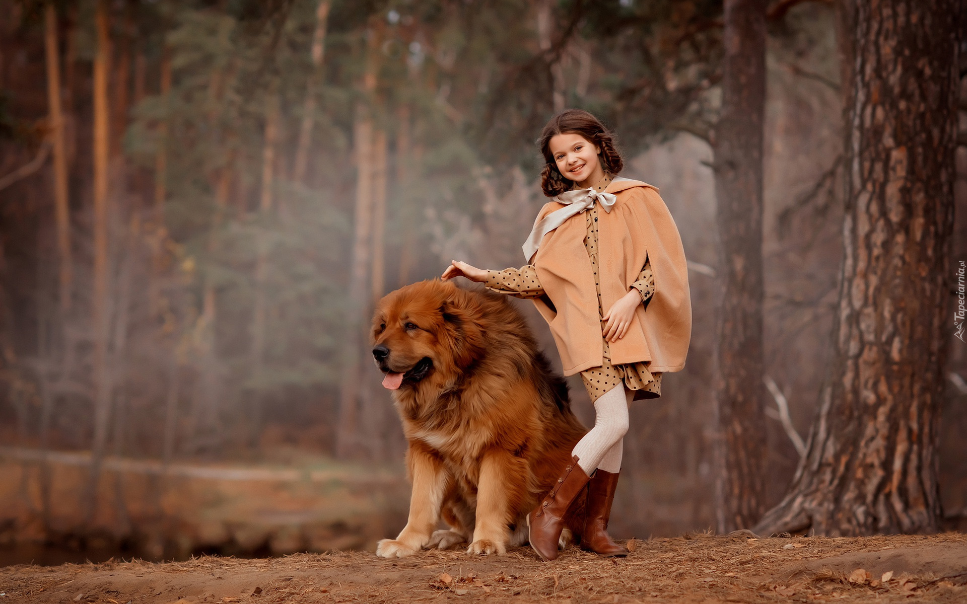 Edytor tapety: Dziewczynka z mastifem tybetańskim