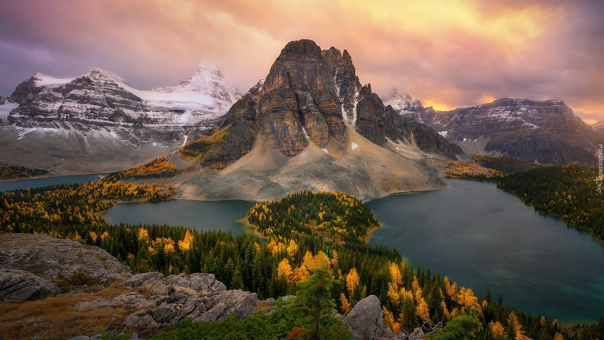 Edytor tapety: Góra Mount Assiniboine nad jeziorami w Kanadzie
