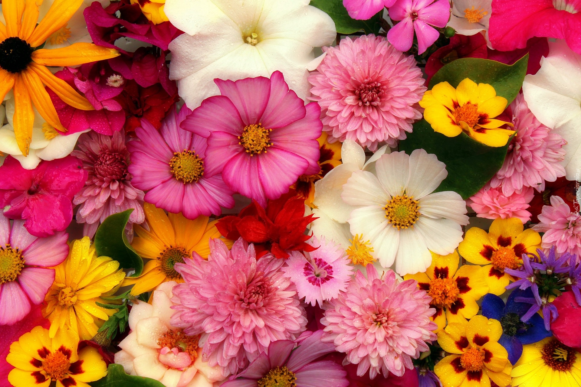 Edytor tapety: Różnokolorowe mokre kwiaty