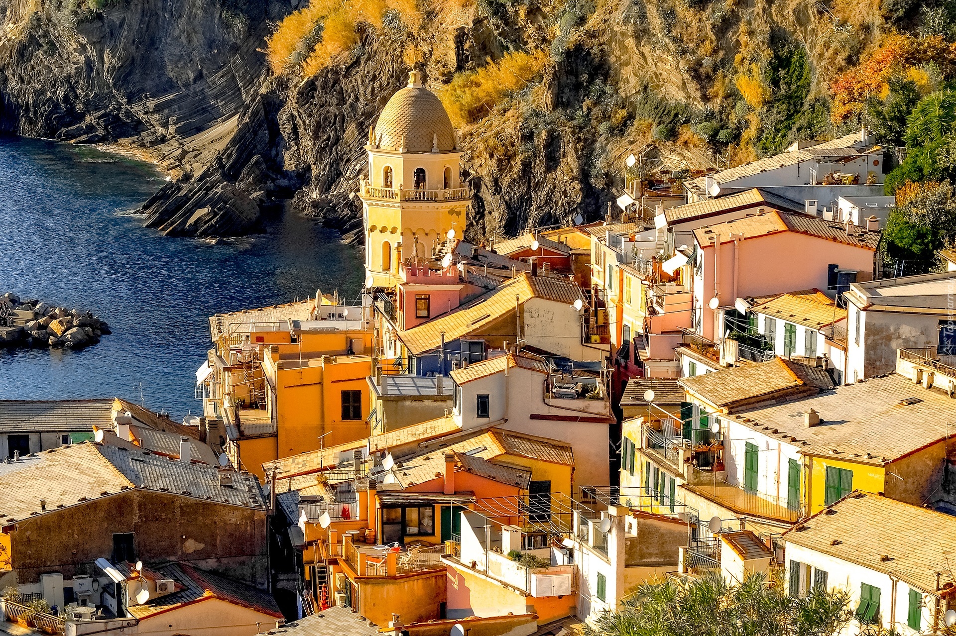 Edytor tapety: Włoskie miasteczko Vernazza w słonecznym blasku