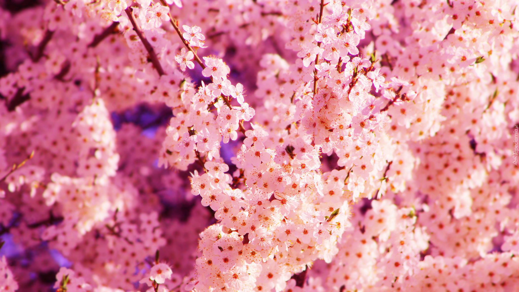 Edytor tapety: Rozświetlone słońcem gałązki drzewa owocowego