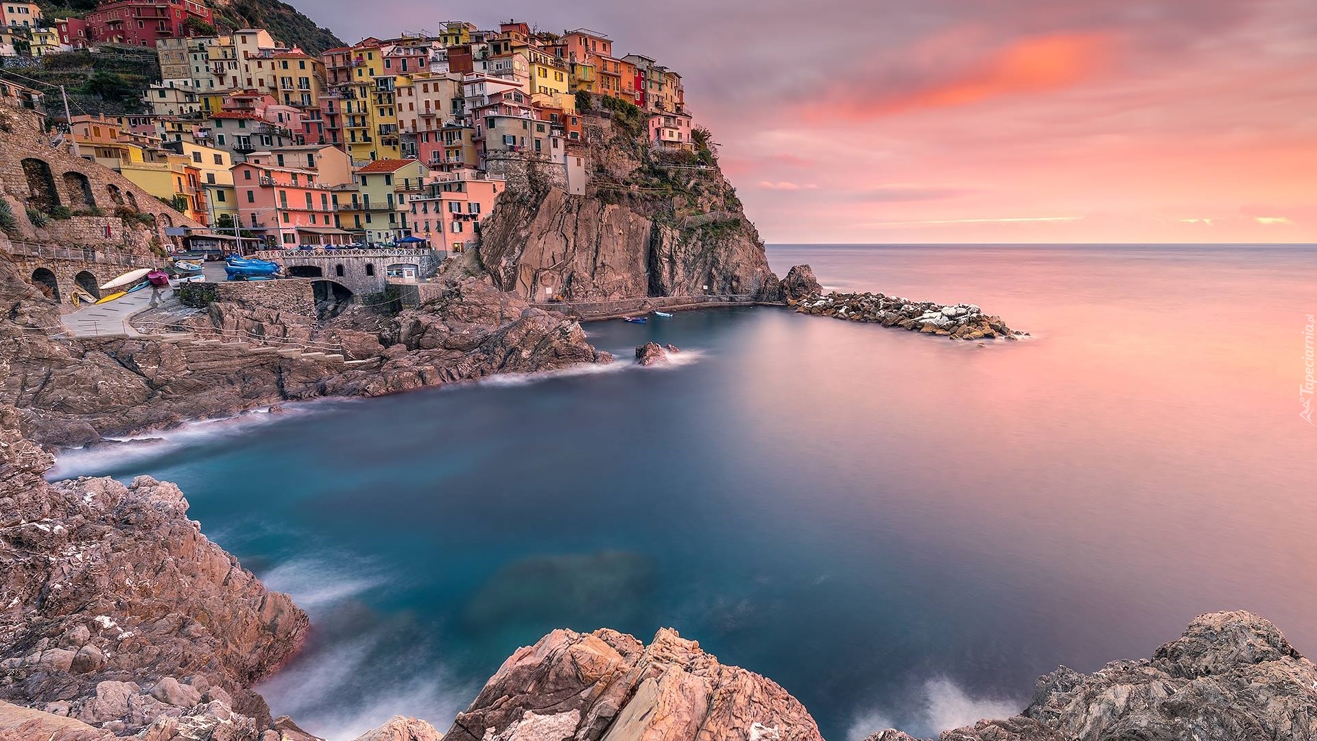 Edytor tapety: Manarola nad Morzem Liguryjskim pod kolorowym niebem
