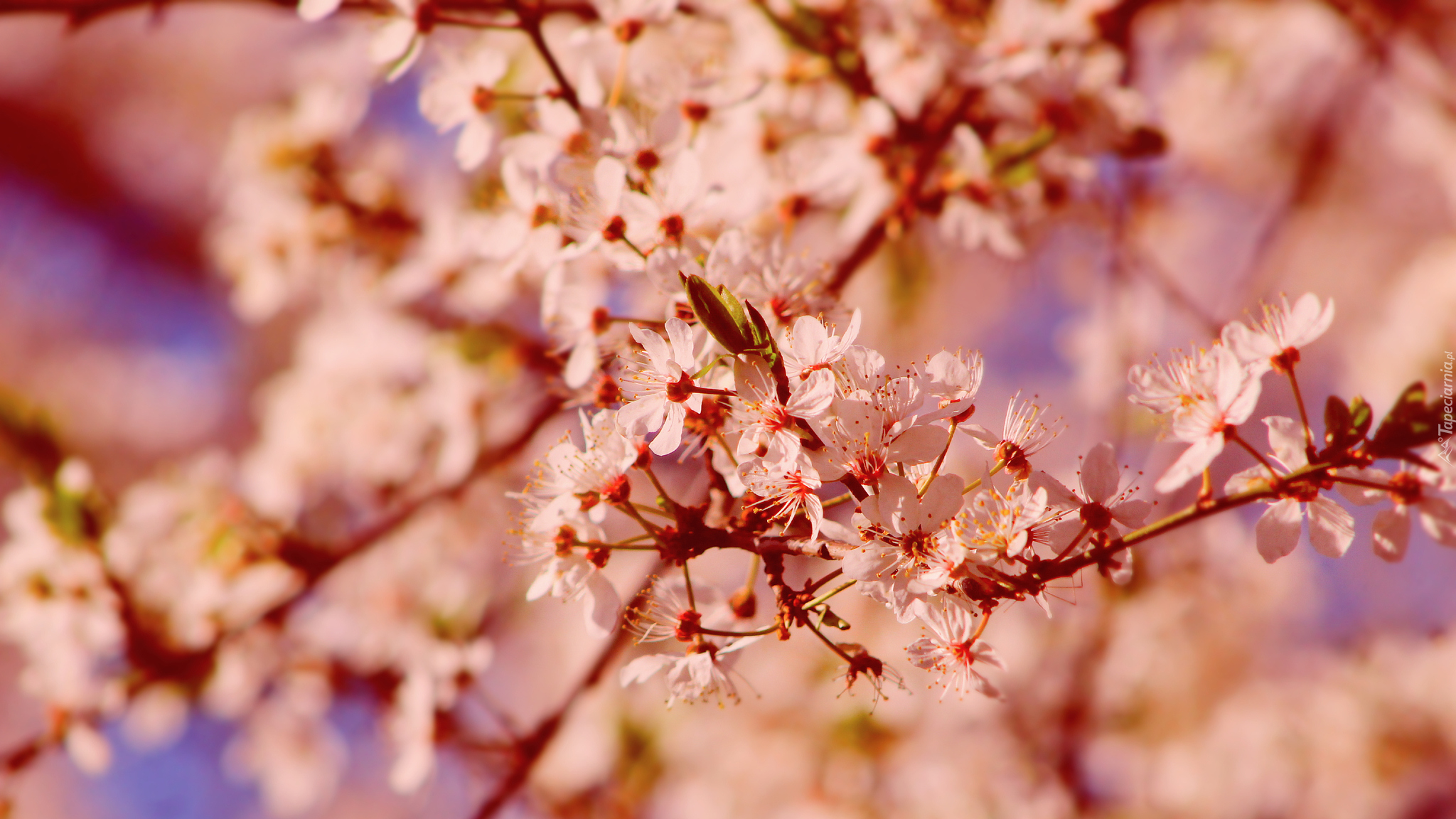 Edytor tapety: Gałązki drzewa owocowego w słońcu