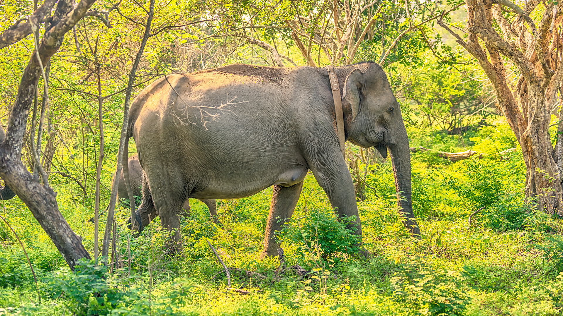 Edytor tapety: Słonica i słoniątko pod drzewami