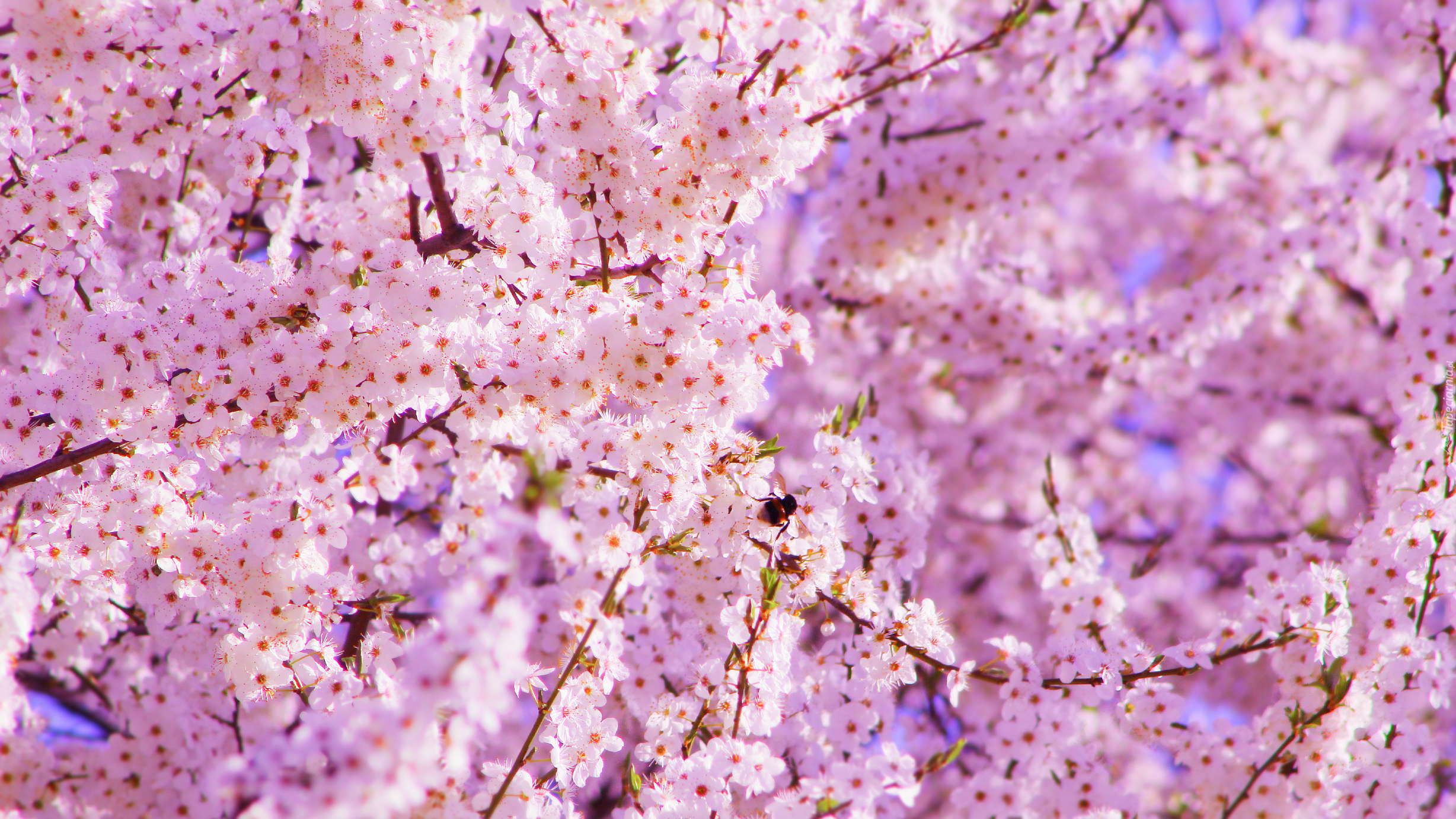 Edytor tapety: Różowe kwiaty na gałązkach drzewa owocowego