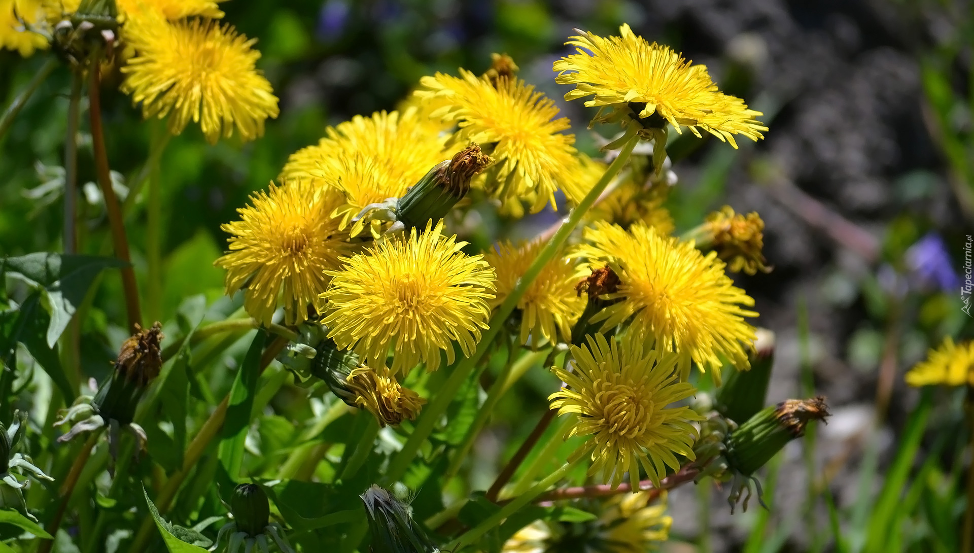 Edytor tapety: Kwitnące mniszki lekarskie w zbliżeniu