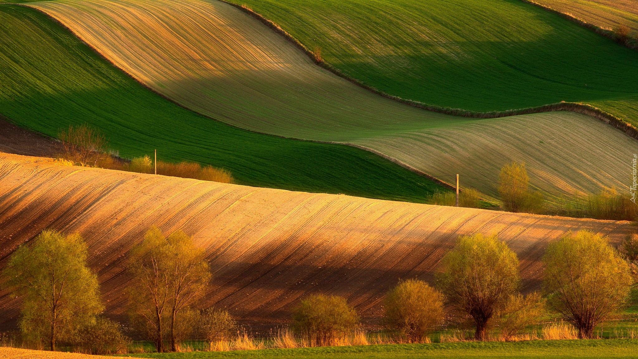Edytor tapety: Pola na wzgórzach na Ponidziu