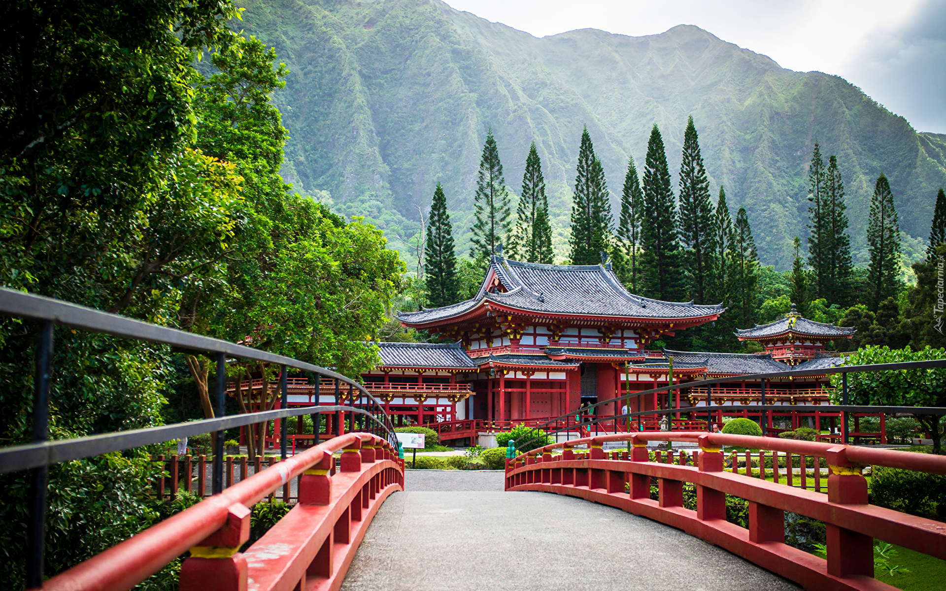 Edytor tapety: Most do świątyni Byodo-In Temple na Hawajach