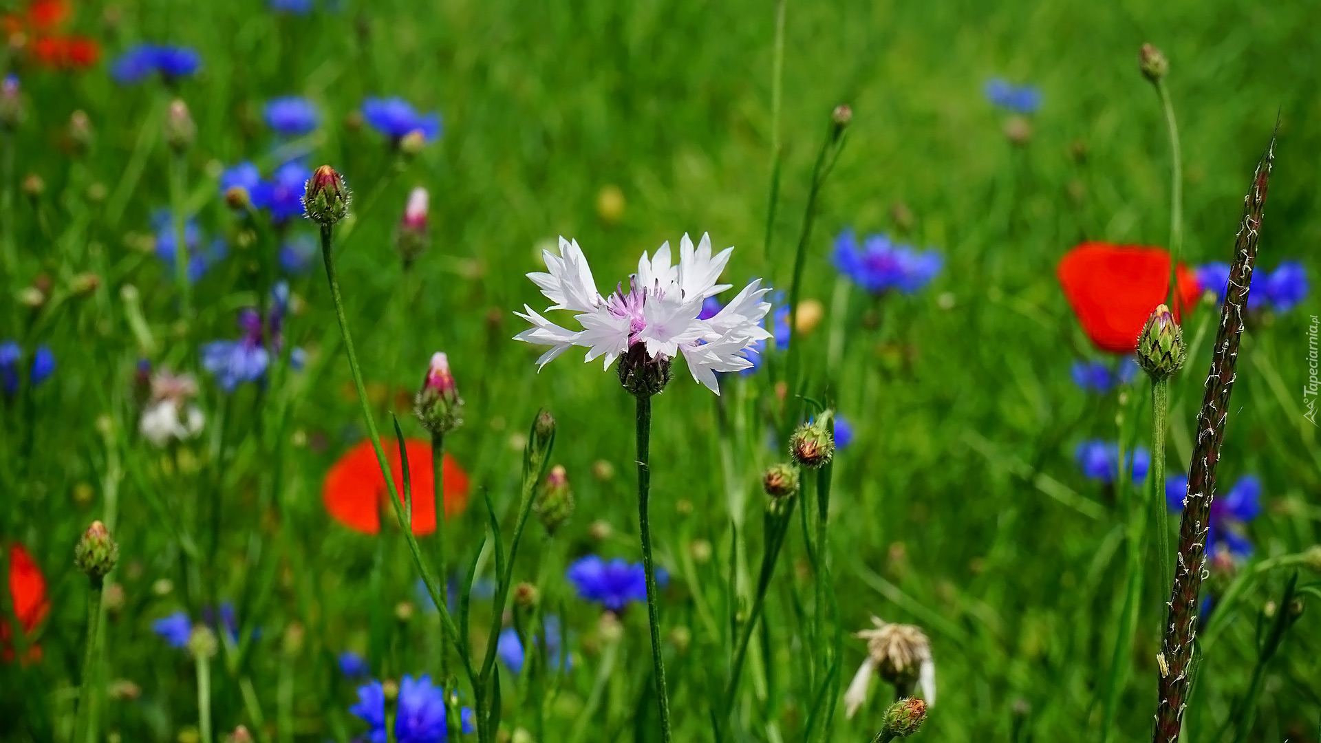 Edytor tapety: Jasnoróżowy chaber na tle łąki