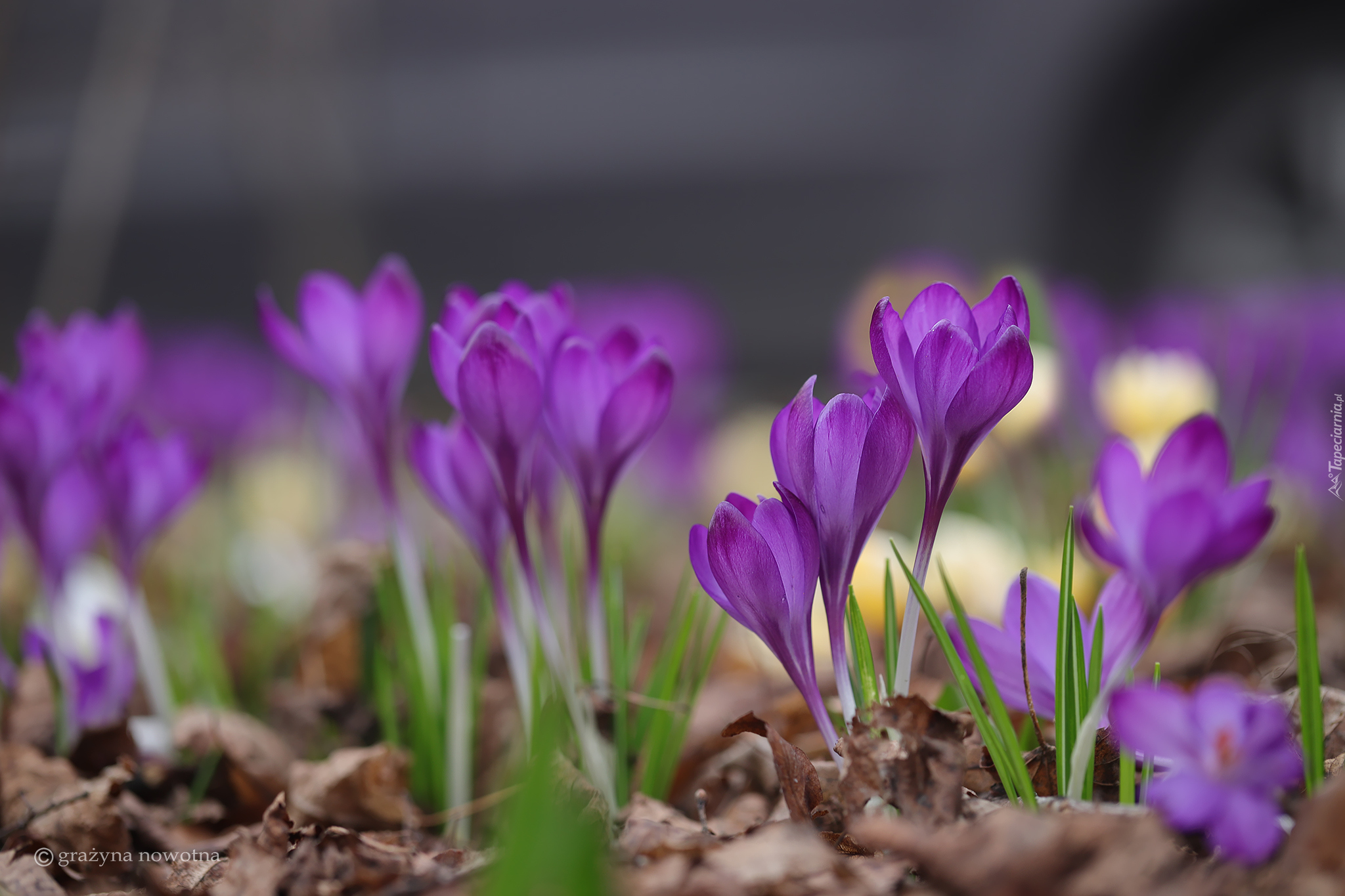 Edytor tapety: Fioletowe krokusy w suchych liściach