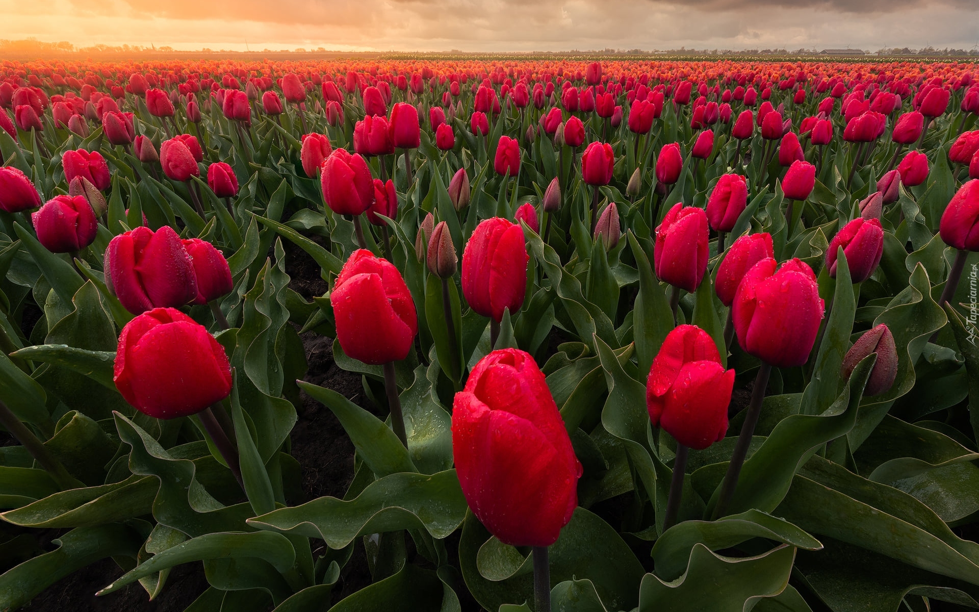 Edytor tapety: Plantacja czerwonych tulipanów