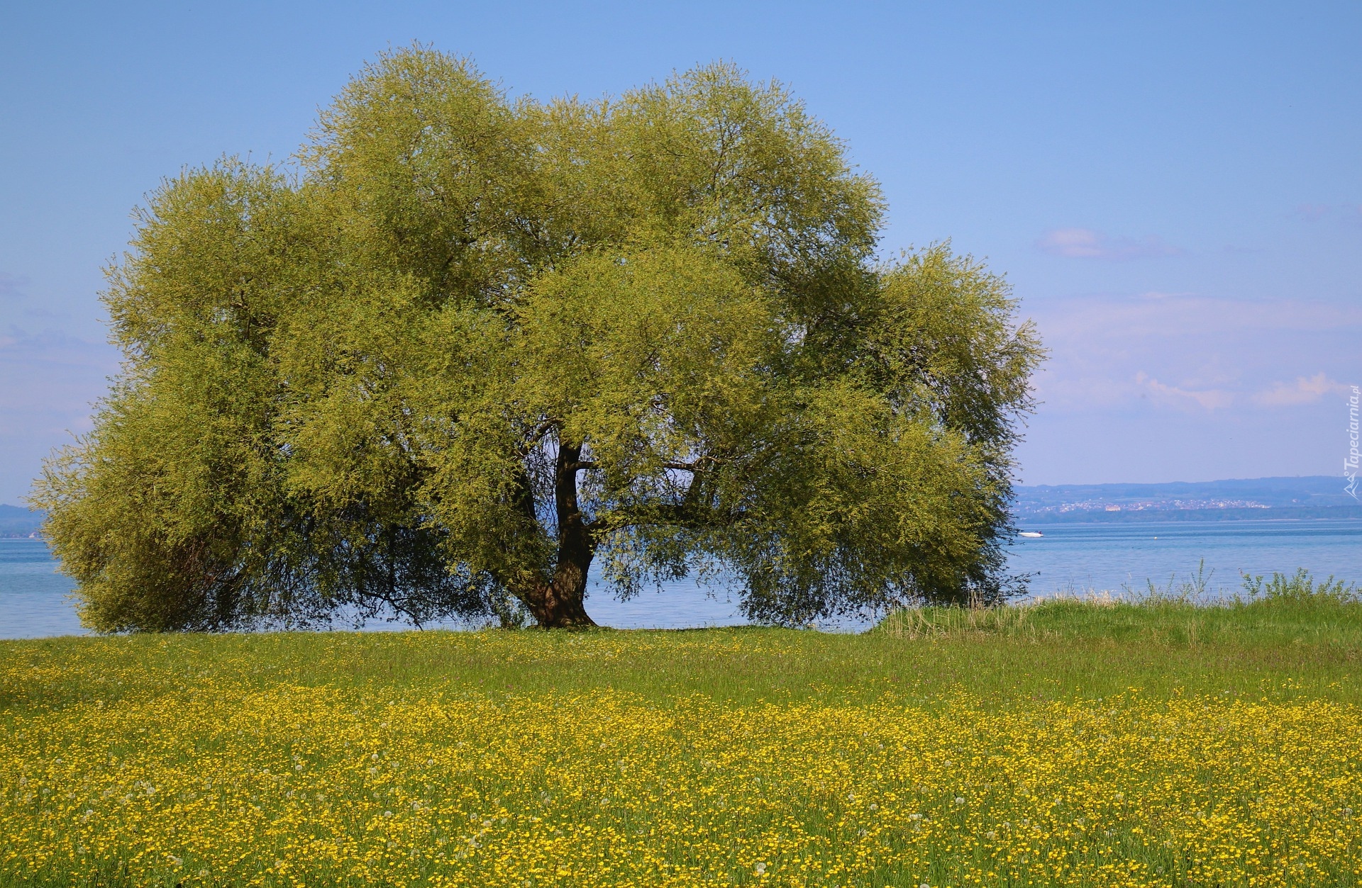 Edytor tapety: Rozłożyste zielone drzewo na łące
