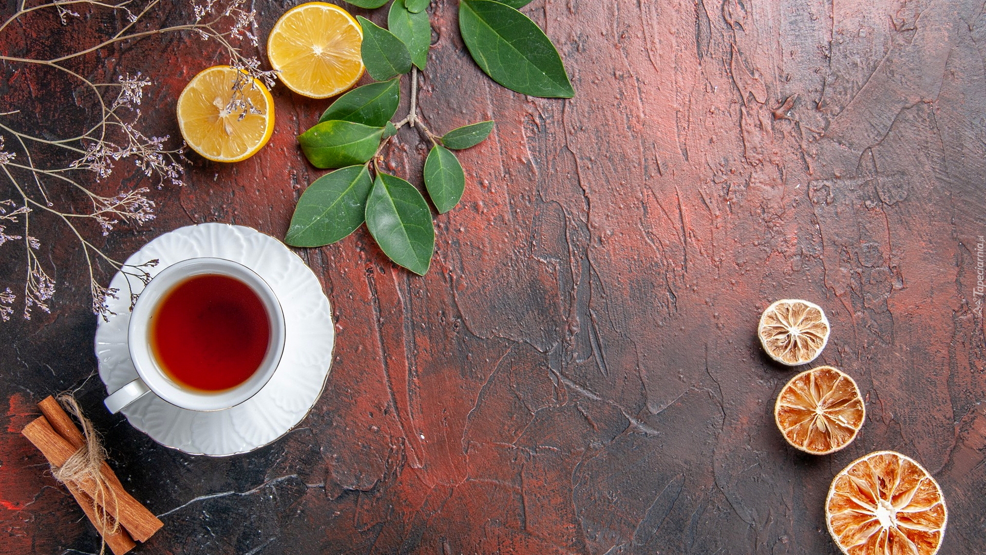 Edytor tapety: Plasterki cytryny obok herbaty w filiżance