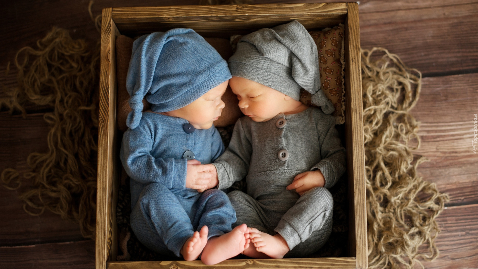 Edytor tapety: Dwójka śpiących dzieci w drewnianej skrzynce