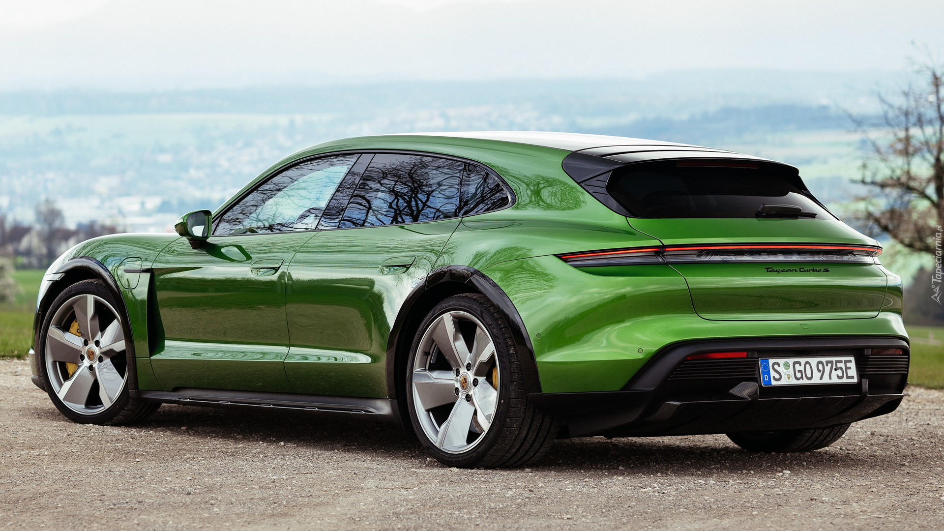 Edytor tapety: Tył zielonego Porsche Taycan Turbo S Cross Turismo