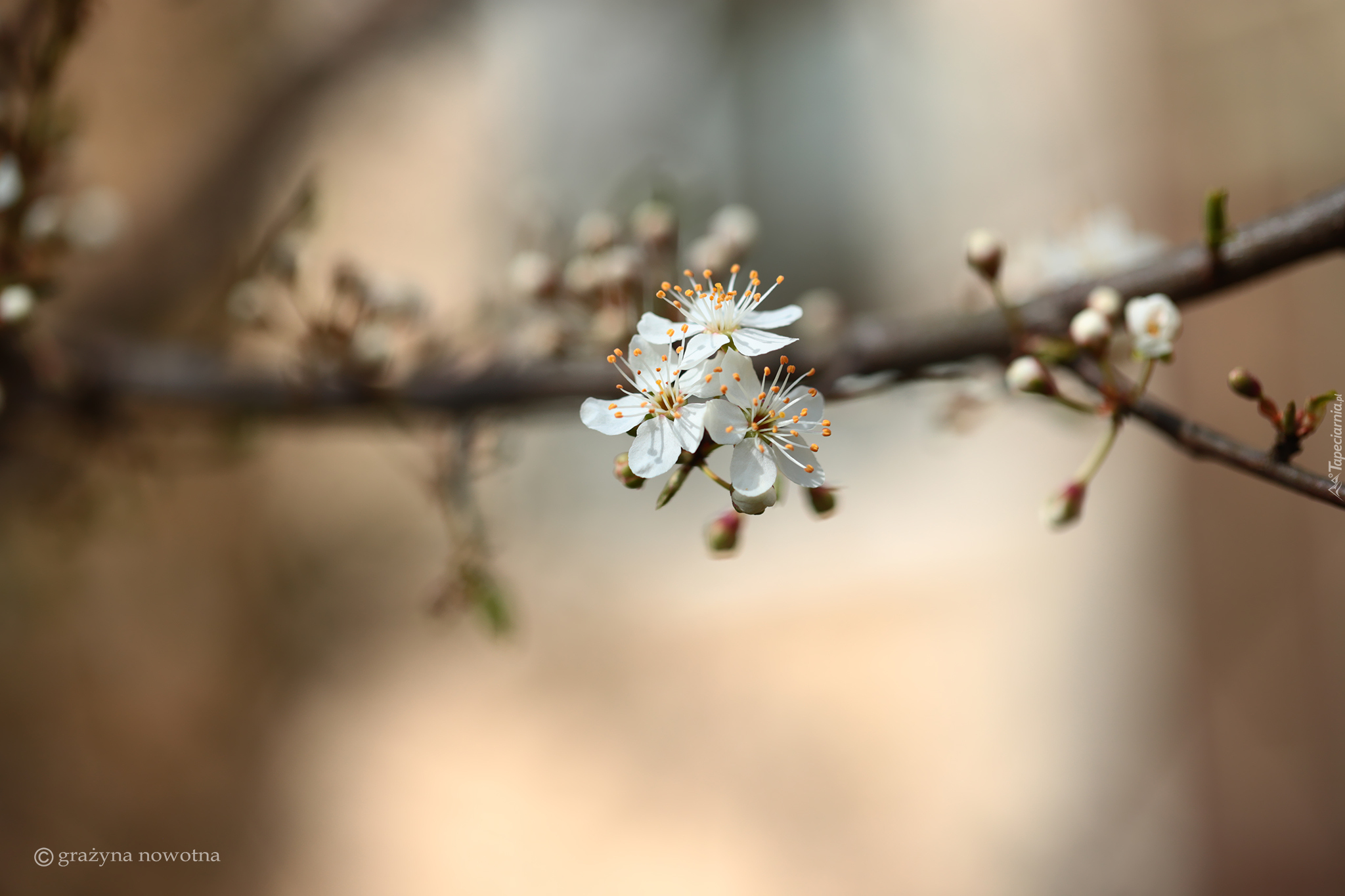 Edytor tapety: Białe kwiaty z pręcikami na gałązce