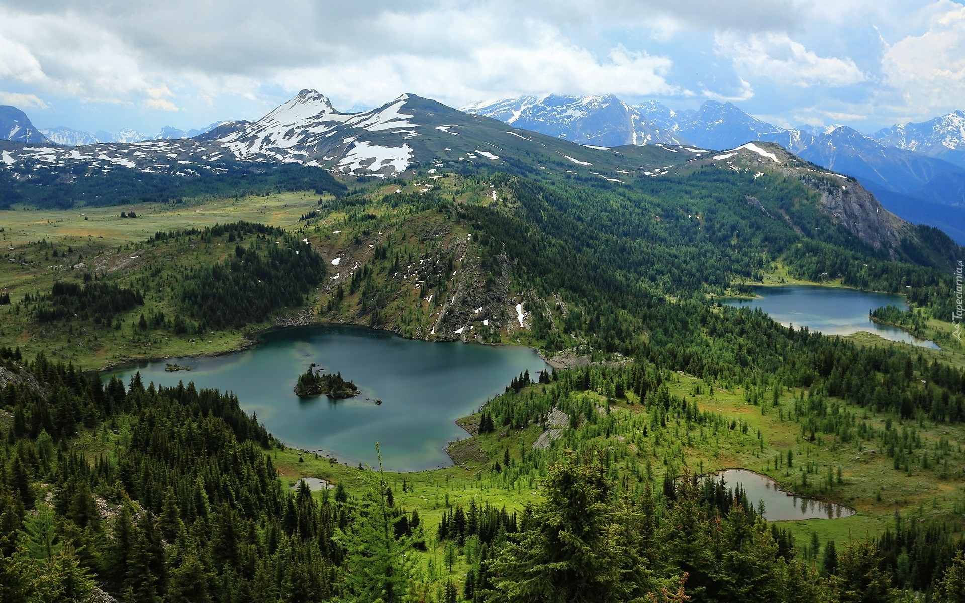 Edytor tapety: Górskie jeziora i zielone lasy