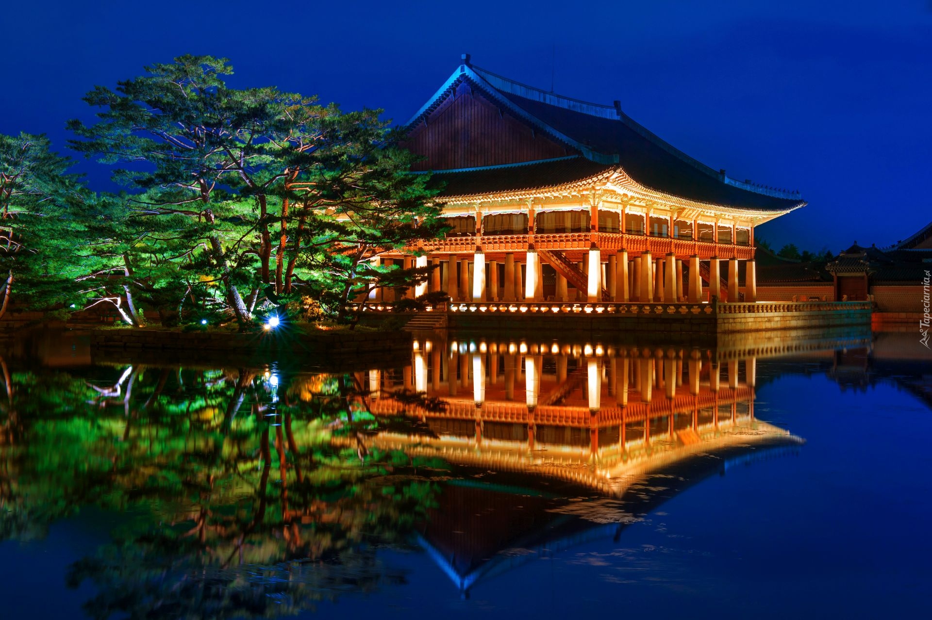 Edytor tapety: Pałac Gyeongbokgung nad stawem nocą