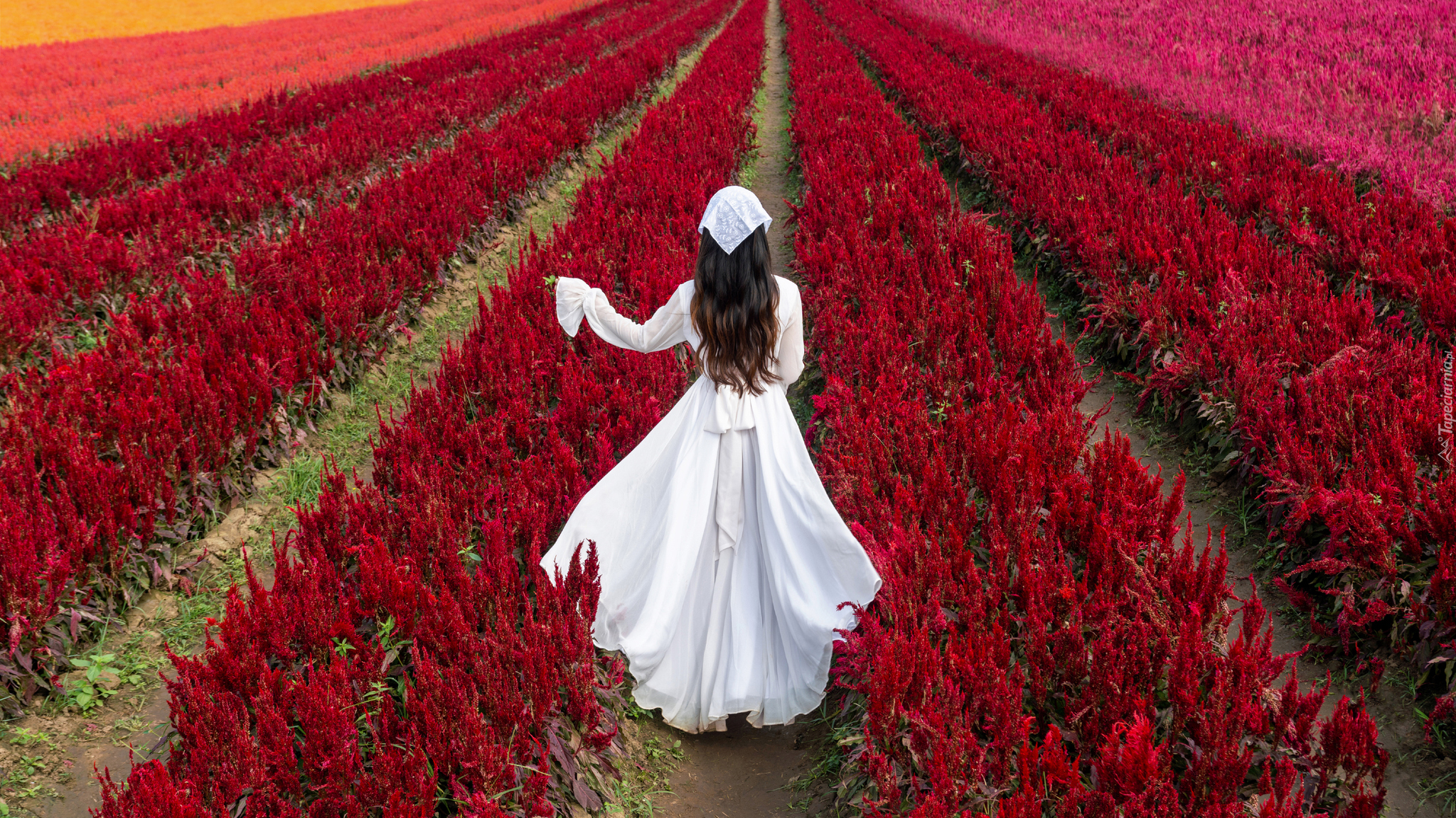 Edytor tapety: Dziewczyna w białej sukience na polu celozji
