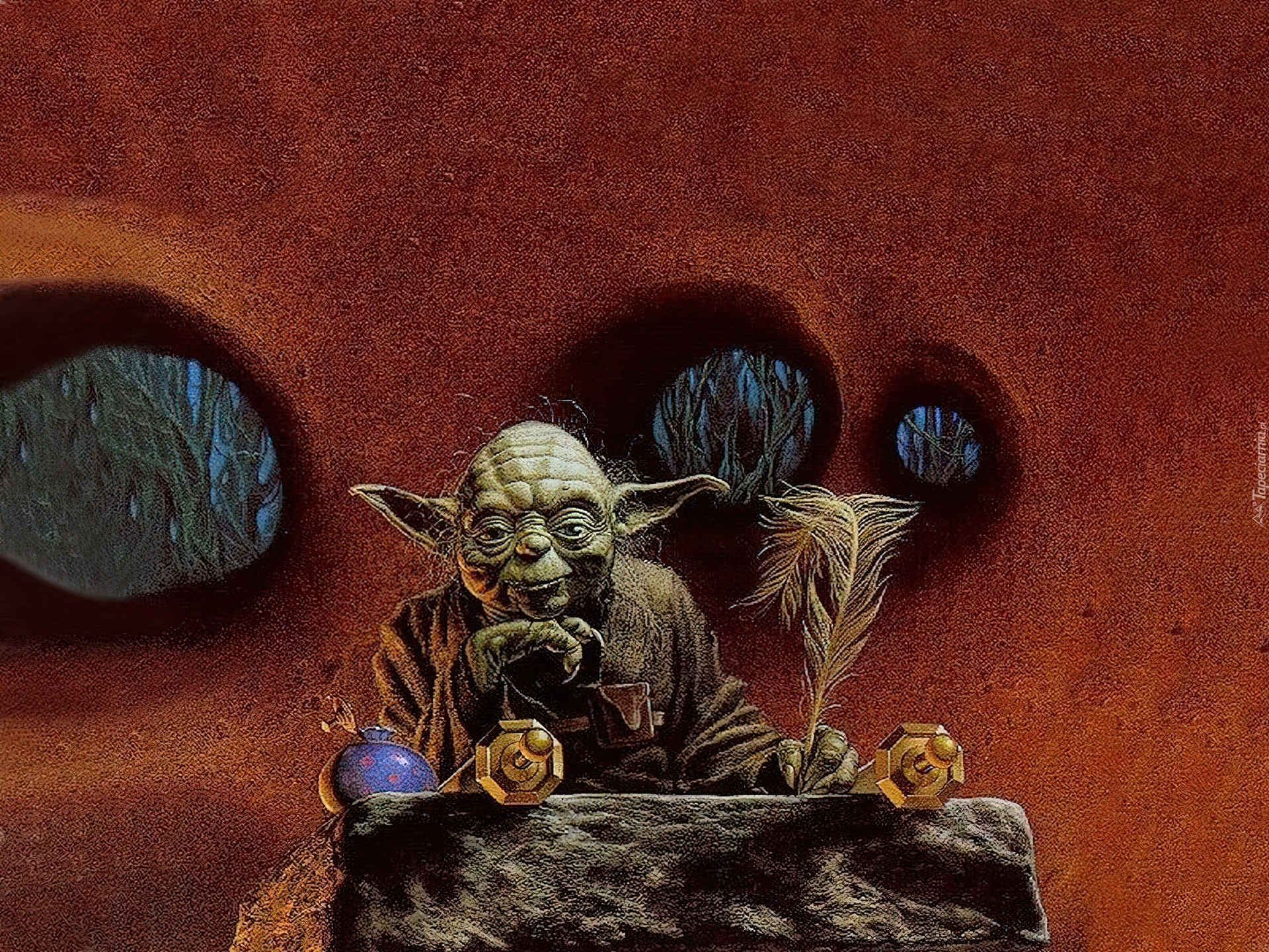 Edytor tapety: Star Wars, ufoludek, siedzi, pióro