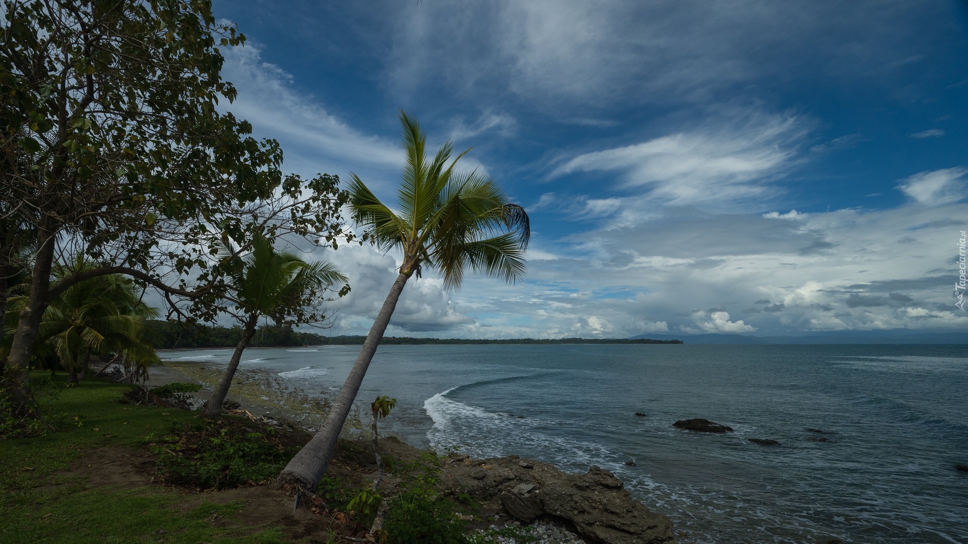 Edytor tapety: Palmy i drzewa nad brzegiem morza