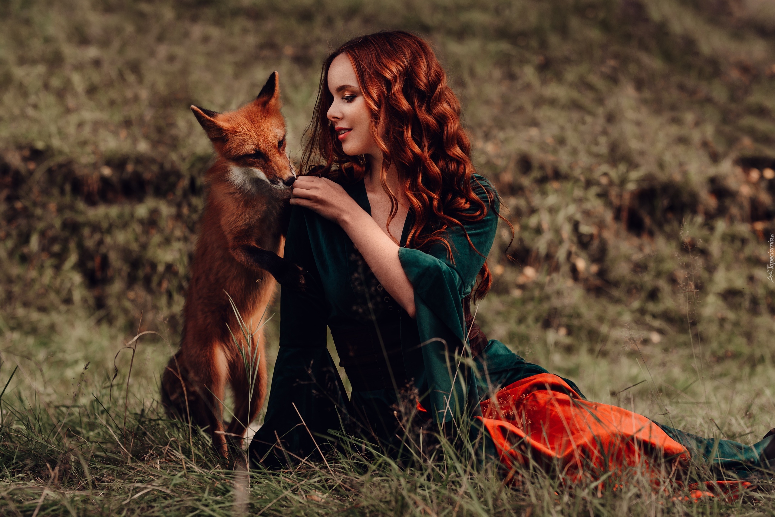 Edytor tapety: Rudowłosa dziewczyna z lisem
