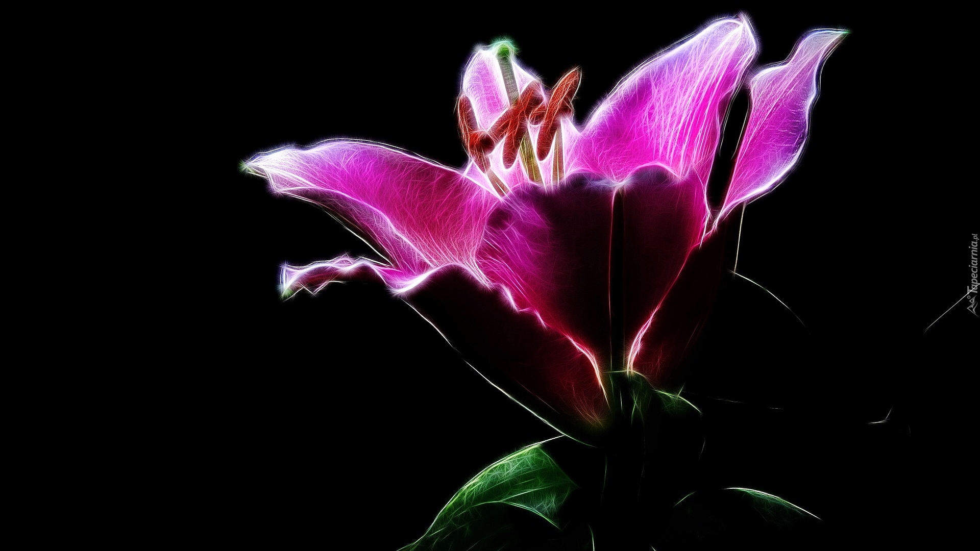 Edytor tapety: Różowa lilia w grafice fractalius na ciemnym tle
