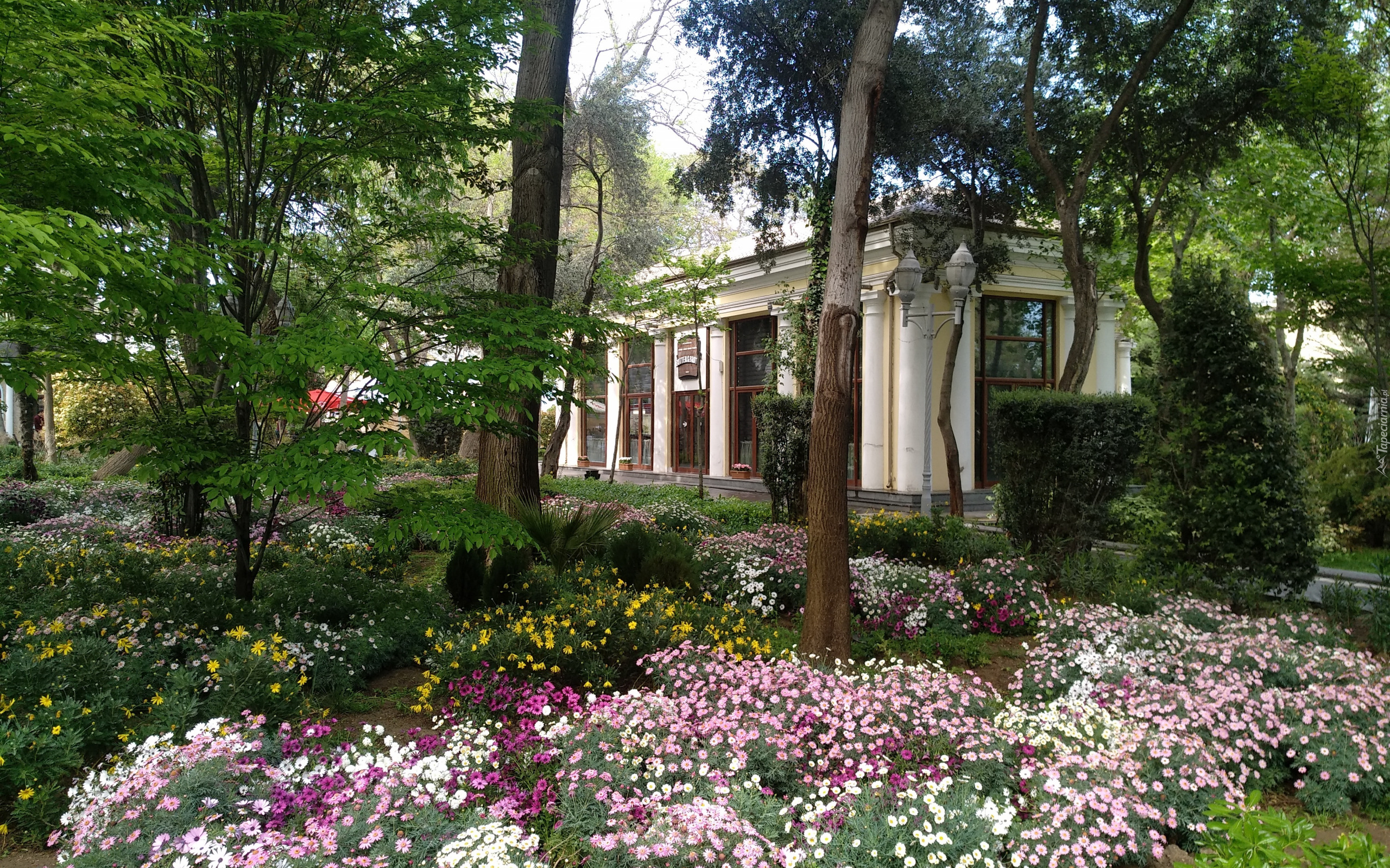 Edytor tapety: Drzewa w ogrodzie przed domem