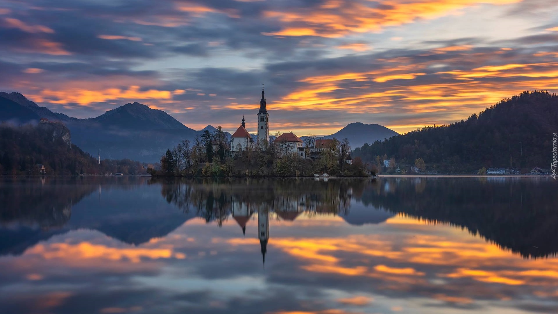 Edytor tapety: Wyspa Blejski Otok z kościołem Zwiastowania Marii Panny