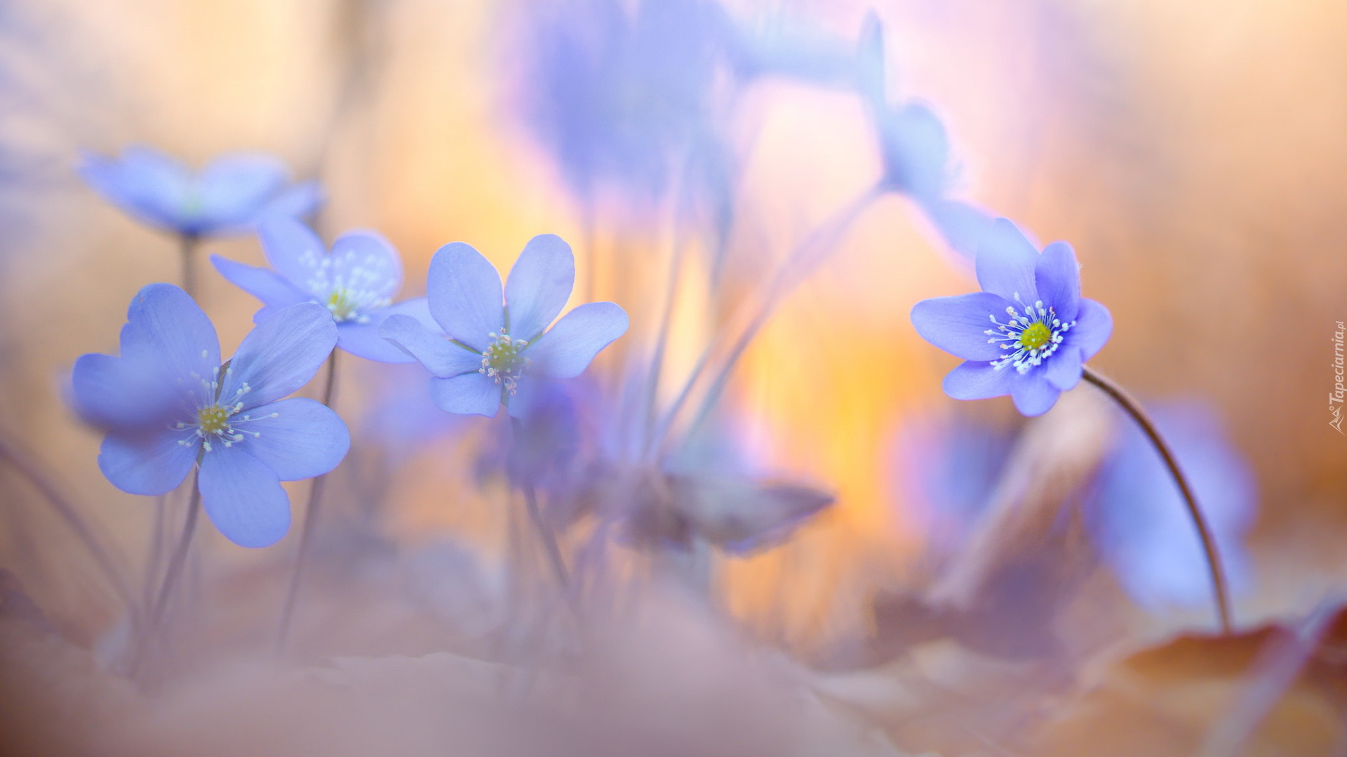Edytor tapety: Jasnofioletowe przylaszczki na rozświetlonym tle